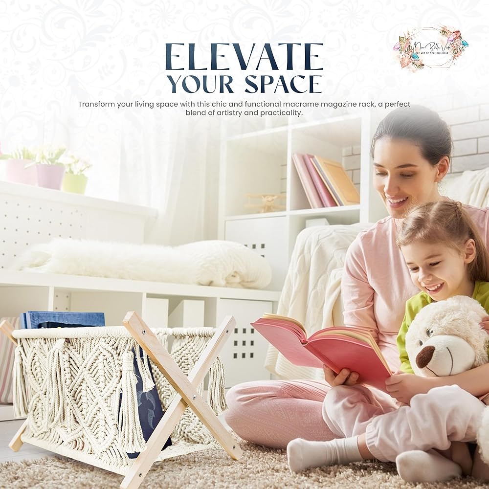 𝐁𝐨𝐡𝐨 𝐇𝐨𝐦𝐞 𝐃𝐞𝐜𝐨𝐫: The Mia Bella Vida Macrame Magazine Rack is designed to enhance the boho aesthetic of your home decor. Its elegant macrame design adds a touch of sophistication and style to any room, making it a perfect addition for those who love bohemian or eclectic interior design.
