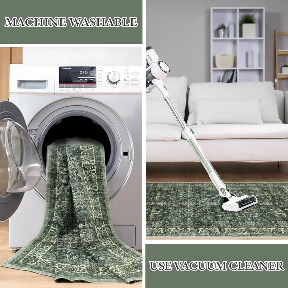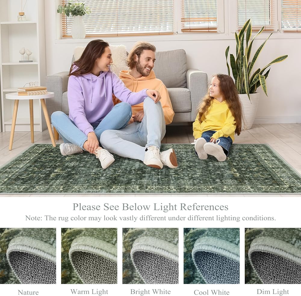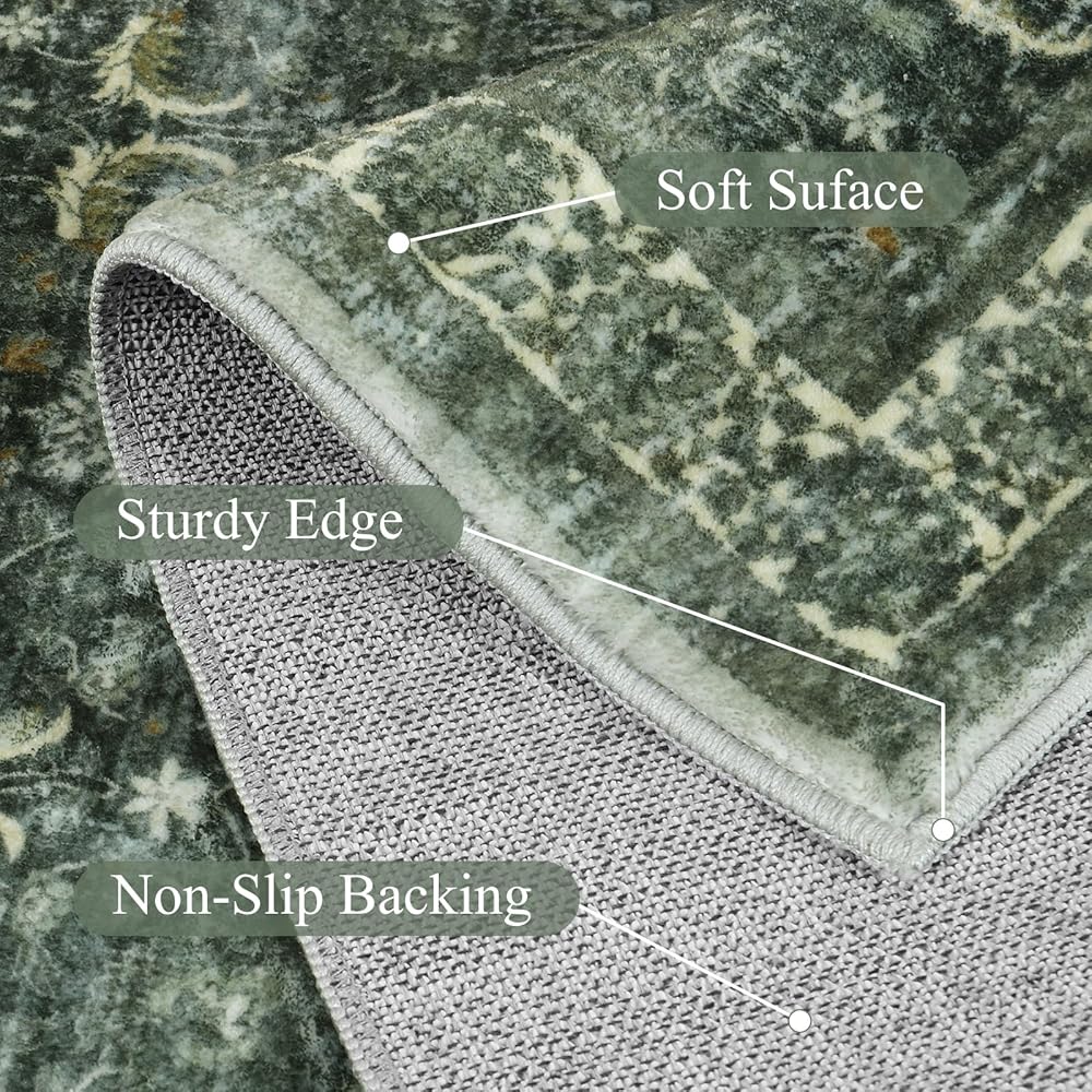 Anidaroel Washable Area Rug for Living Room, Vintage Boho Rugs for Bedroom, Soft Stain Resistant Large Dining Room Table Mat, Non Slip Distressed Accent Floor Carpet for Bedside Office Entry