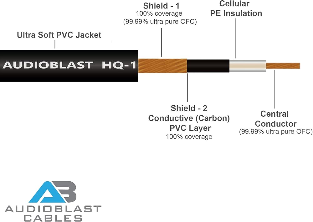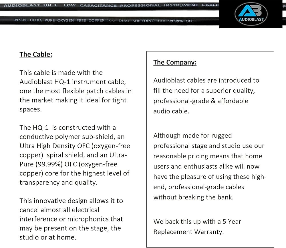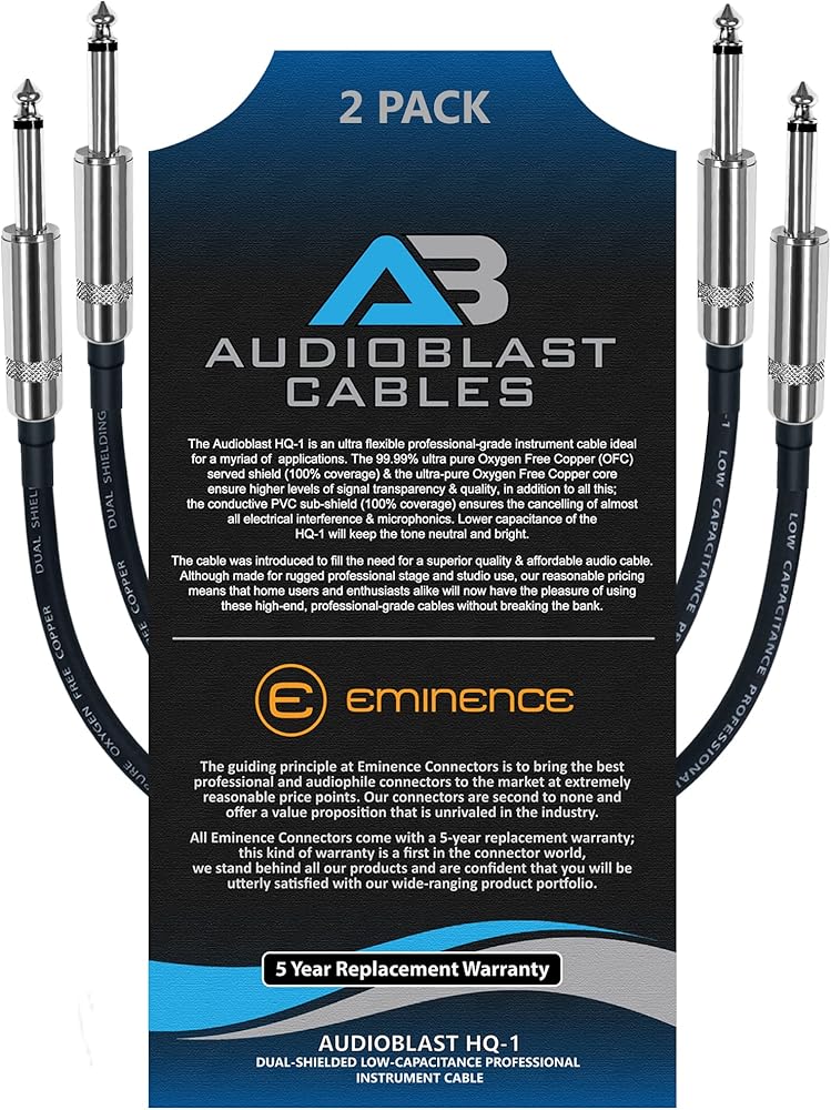 Audioblast - وحدتان - 9 بوصة - HQ-1 - فائق المرونة - مزدوج الحماية (100%) - كابل تصحيح دواسة تأثيرات آلة الجيتار مع مقابس TS مستقيمة مقاس ¼ بوصة (6.35 مم) وأحذية مزدوجة متداخلة