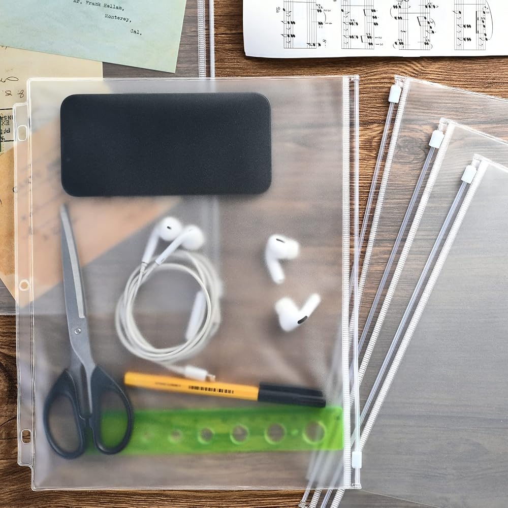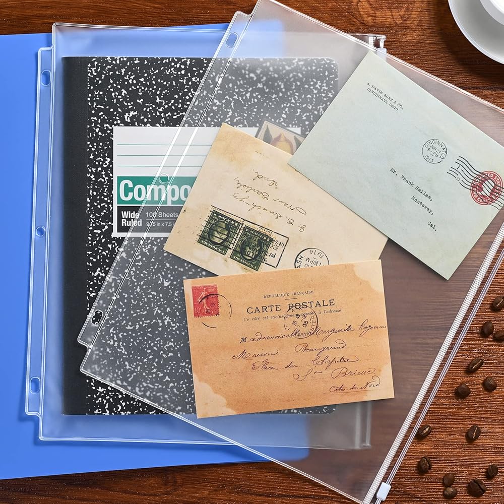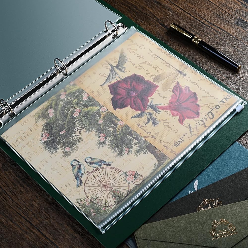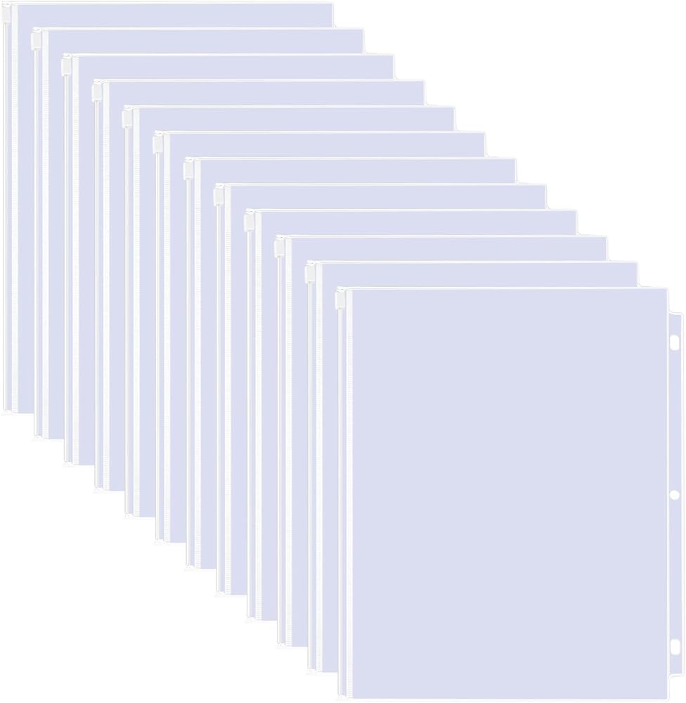 12 عبوة من جيوب الموثق، مقاس الحروف 3 فتحات 11.4 بوصة × 9.4 بوصة مقاومة للماء من البولي فينيل كلوريد، أكياس تخزين مستندات فضفاضة بأوراق شجر، أكياس شفافة بسحاب، جيب للموثق ذو 3 حلقات