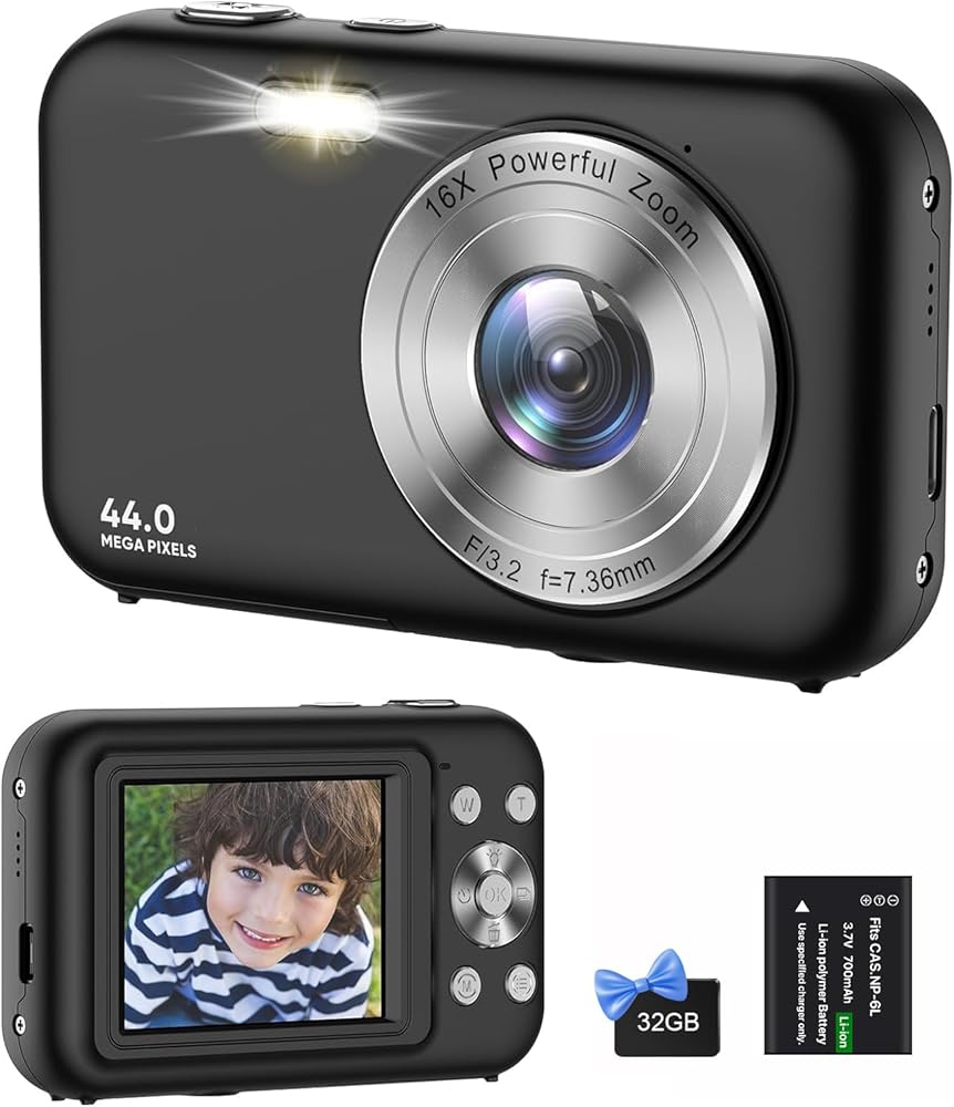 【كاميرا رقمية بدقة 48 ميجابكسل FHD 1080P】 الكاميرا الرقمية للتصوير الفوتوغرافي مجهزة بدقة صورة 44 ميجابكسل وفيديو عالي الدقة 1080 بكسل، تعمل بسرعة وتدعم التكبير الرقمي 16X يمكن أن تساعدك على الاقتراب من موضوعك دون التضحية بجودة الصورة. اضغط على الغالق لالتقاط اللحظات الجميلة التي لا تنسى بسهولة.