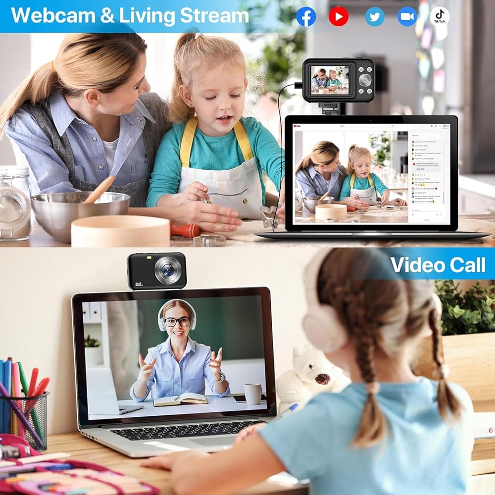 【تسجيل مدونات الفيديو وكاميرا الويب】 تتيح لك الكاميرا الرقمية الخاصة بنا المزودة بوضع الفيديو ومعدل بت عالي يبلغ 30 إطارًا في الثانية إمكانية تسجيل مقاطع فيديو ثابتة وعالية الدقة. تتيح لك ميزة الإيقاف المؤقت الإيقاف المؤقت أثناء تسجيل مدونة فيديو أو تشغيلها، مما يوفر لك الوقت في تحرير الفيديو الخاص بك. بالإضافة إلى ذلك، يمكن أيضًا استخدام كاميرا تسجيل الفيديو الرقمية هذه ككاميرا ويب، حيث تحتوي على ميكروفون مدمج حتى تتمكن من إجراء مكالمات فيديو أو البث المباشر بسهولة على جميع وسائل التواصل الاجتماعي.