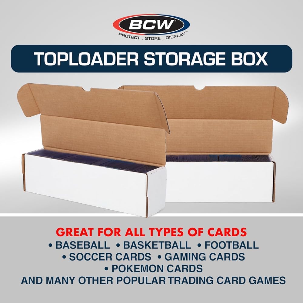 • PERFECT FOR A WIDE RANGE OF COLLECTIBLES - The BCW Toploader box is great for all kinds of cards including baseball cards, basketball cards, football cards, soccer cards etc, along with gaming cards such as Magic The Gathering (MTG), Pokemon Cards, Yugioh, Dragon Ball and many other popular Trading Card Games (TCG's) and Collectible Card Games (CCG's)