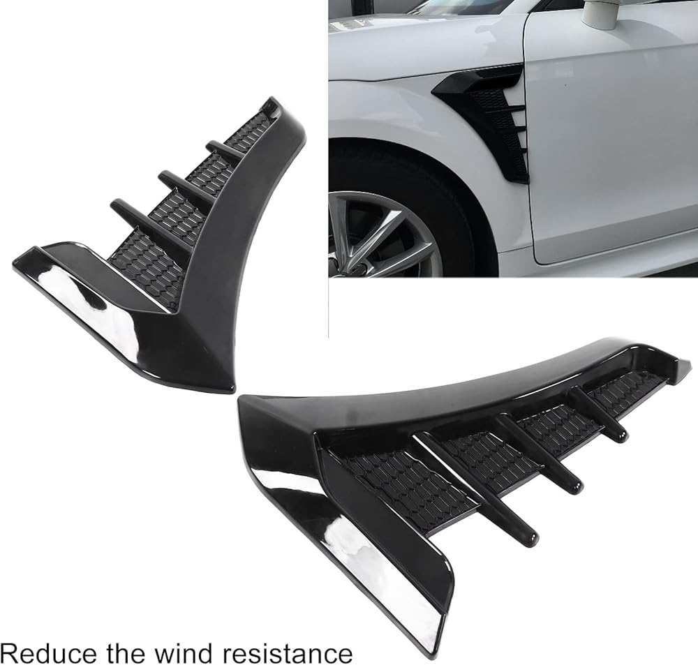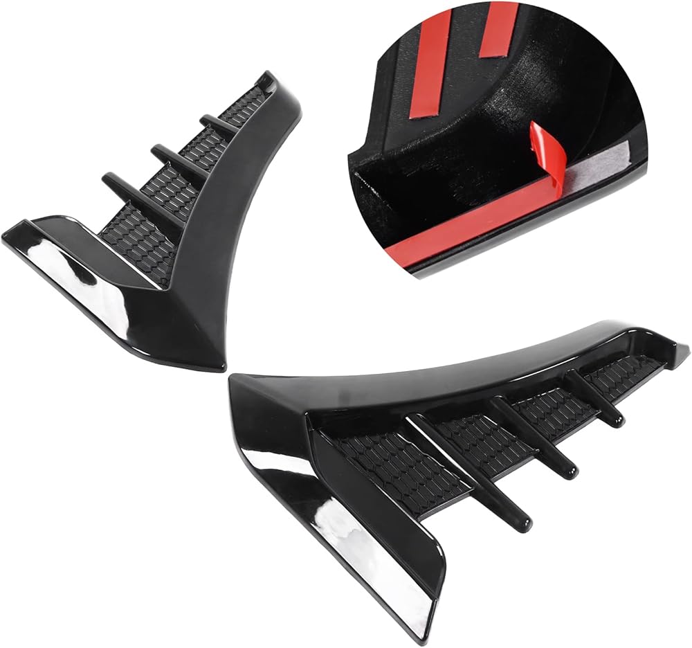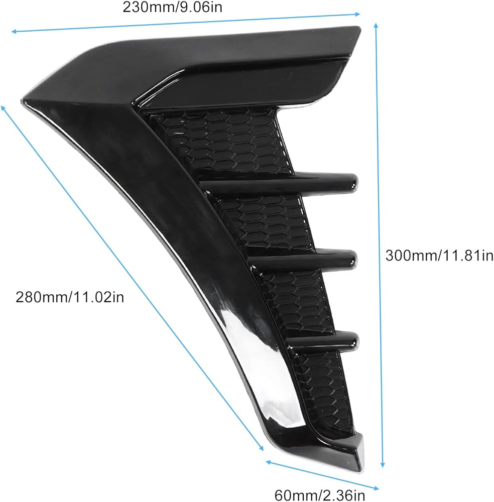 Side Vent Cover, 1 Pair Glossy Black Rubber Car Front Fender Side Air Vent Cover Trim Decoration Sticker Universal for Most Cars