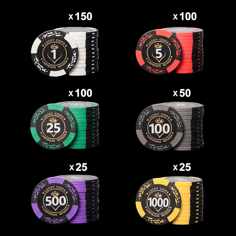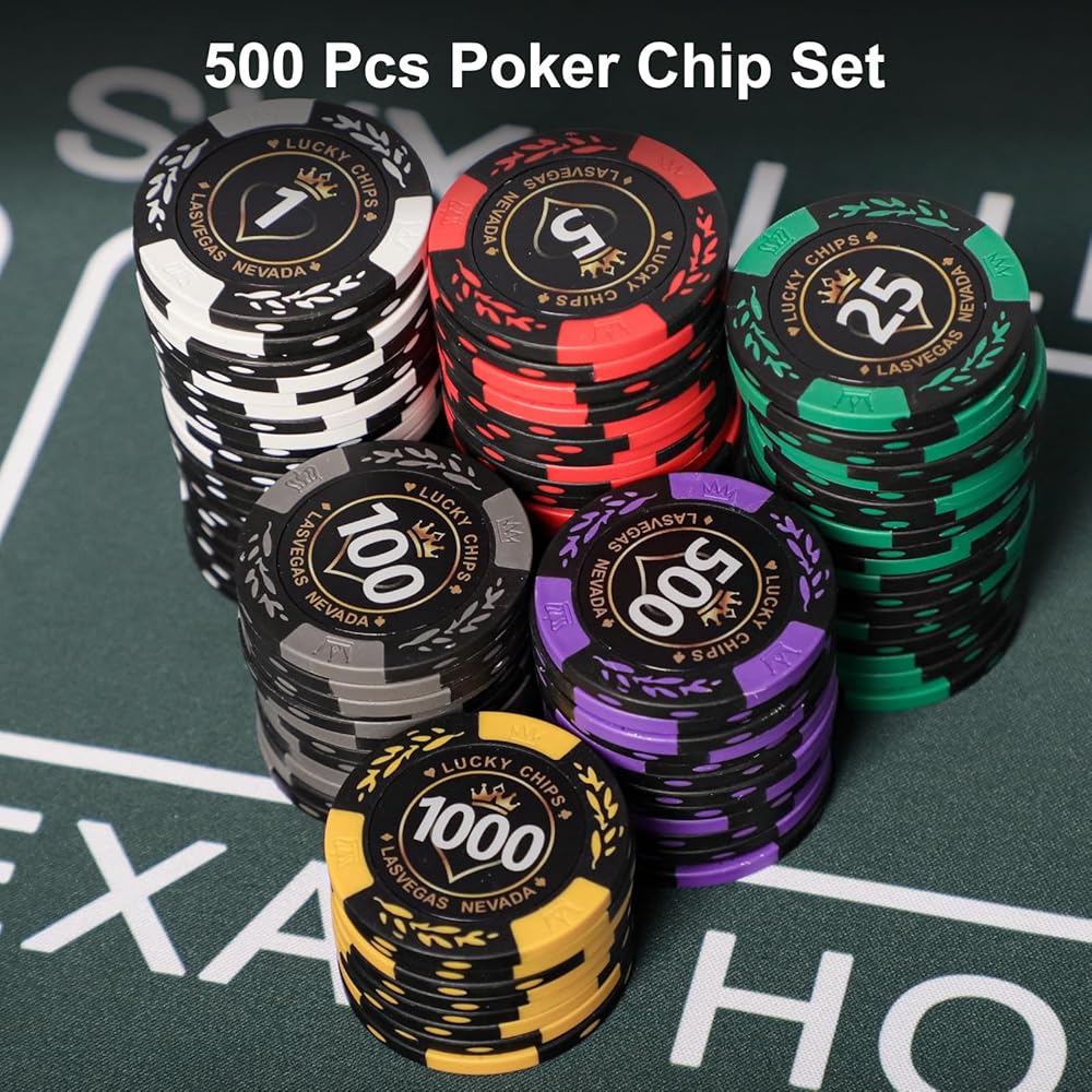 【فئات متعددة】 هذه المجموعة المكونة من 500 قطعة من رقائق البوكر بأرقام تشمل 1 دولار، و5 دولارات، و25 دولارًا، و100 دولار، و500 دولار، و1000 دولار. اضبط قيم الرقائق بسهولة بناءً على متطلبات اللعبة وحدود الرهان. تتميز كل فئة بأنماط وألوان جميلة للعبتك. مثالية لألعاب البوكر العائلية أو أحداث المقامرة، تلبي هذه الرقائق الـ 500 احتياجات 9-10 لاعبين.