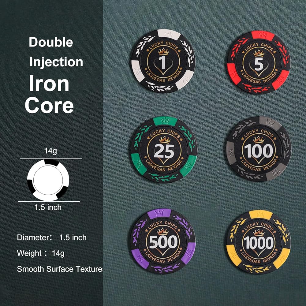 【رقائق ممتازة】 رقائق الكازينو هذه مصنوعة من مواد فائقة الجودة. يبلغ قطر كل شريحة من الطين 1.5 بوصة وتزن 14 جرامًا، وهي تتوافق مع معدات الكازينو الاحترافية. سواء كنت تلعب في المنزل أو في الكازينو، فإن هذه الرقائق توفر لك تجربة لعب استثنائية.