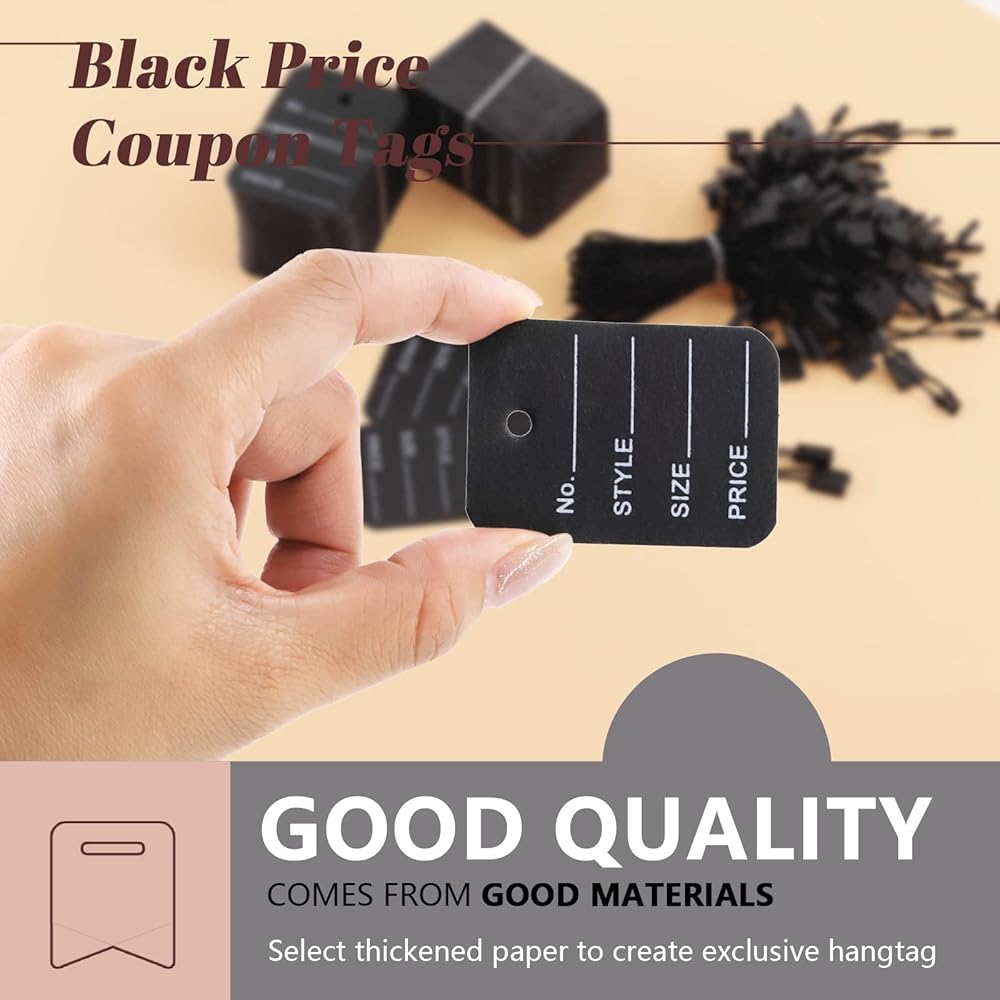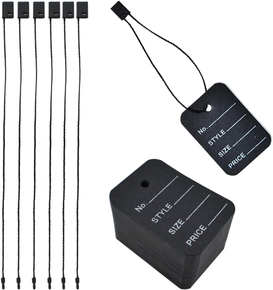 500 Pcs Price Tags and 500 Pcs Hang Tag String, Clothes Size Tags Coupon Tags and Nylon String Snap Lock Pin Loop Fastener Hook Ties for Product Jewelry Clothing Tags is more helpful to display the product information