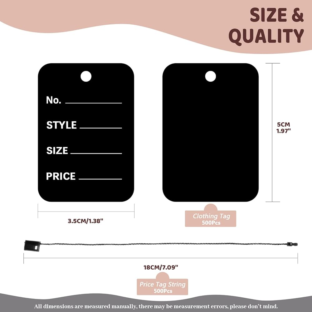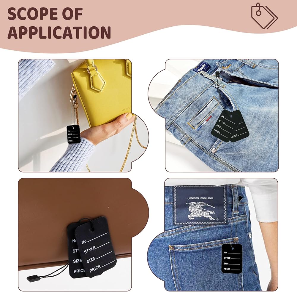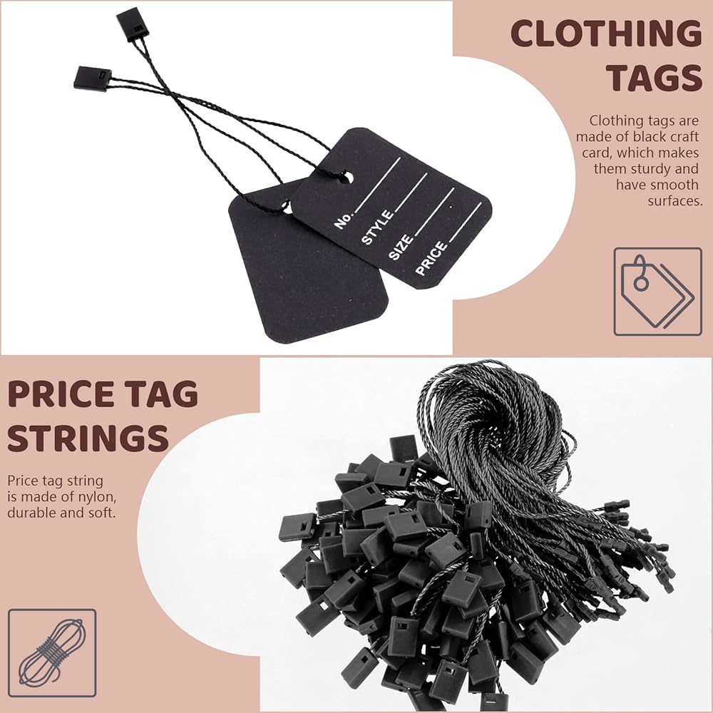 The clothes tags can be written down with prices, serial numbers, styles and sizes, and you can attach them to garment woven labels. Suitable for displaying clothing, shoes, toys, jewelry or other items.