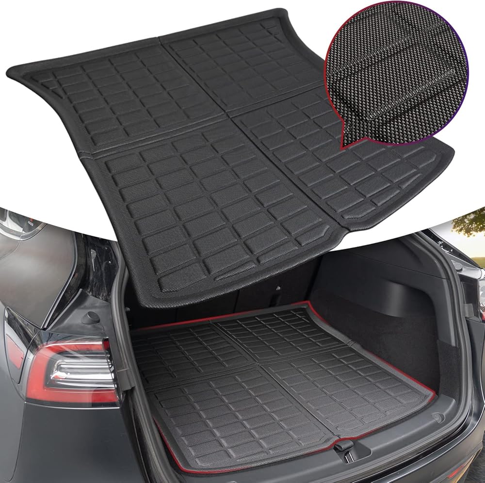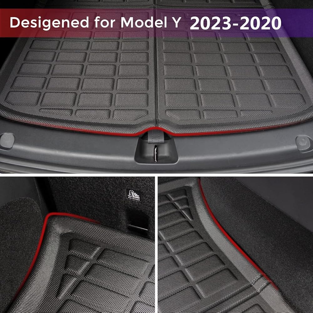 تصميم مخصص: تم تصميم سجادة بطانة البضائع TAPTES للمركبات طراز y 2024 2023 2022 2021 2020. تم قياس وتصميم سجادات TAPTES لطراز y Trunk 2024 2023 2022 لسجادات Tesla y بدقة، وهي مناسبة تمامًا. (للحصول على أفضل نتيجة، تأكد من ذلك لا يمكن تعديل المقاعد الخلفية أو تعديلها حتى النهاية قبل تثبيت سجادات صندوق السيارة الجديدة الخاصة بطراز Tesla Y)