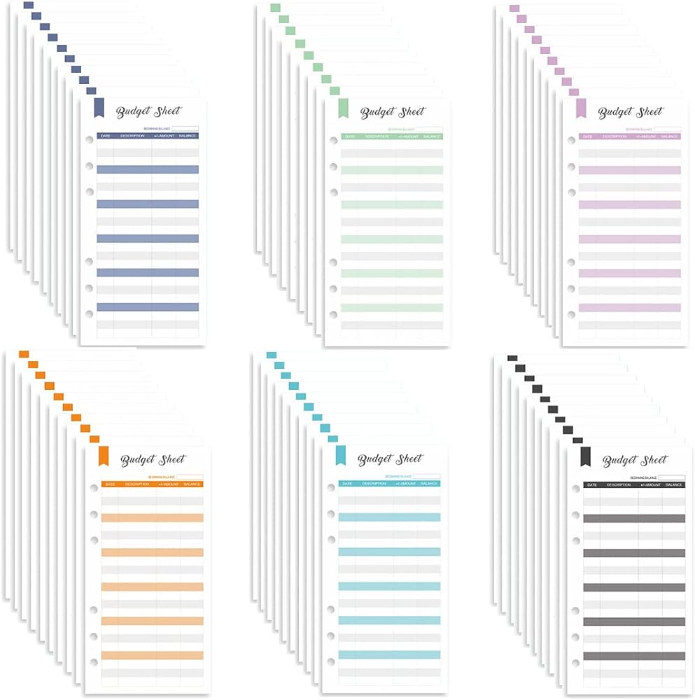 أوراق الميزانية لملف A6 مع 6 فتحات، وأوراق ميزانية تتبع النفقات للأظرف النقدية، وإدراج مجلد الميزانية A6 (متعدد الألوان، A6)