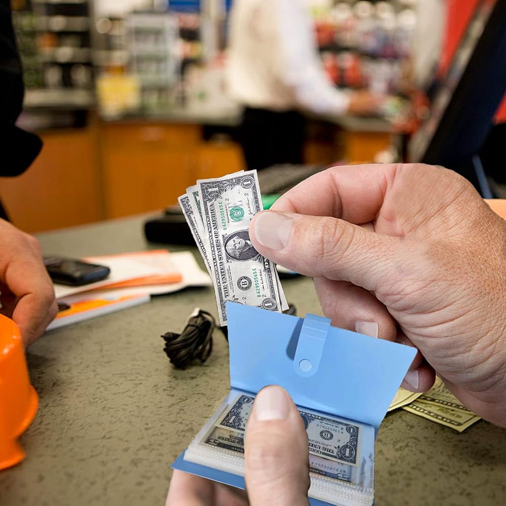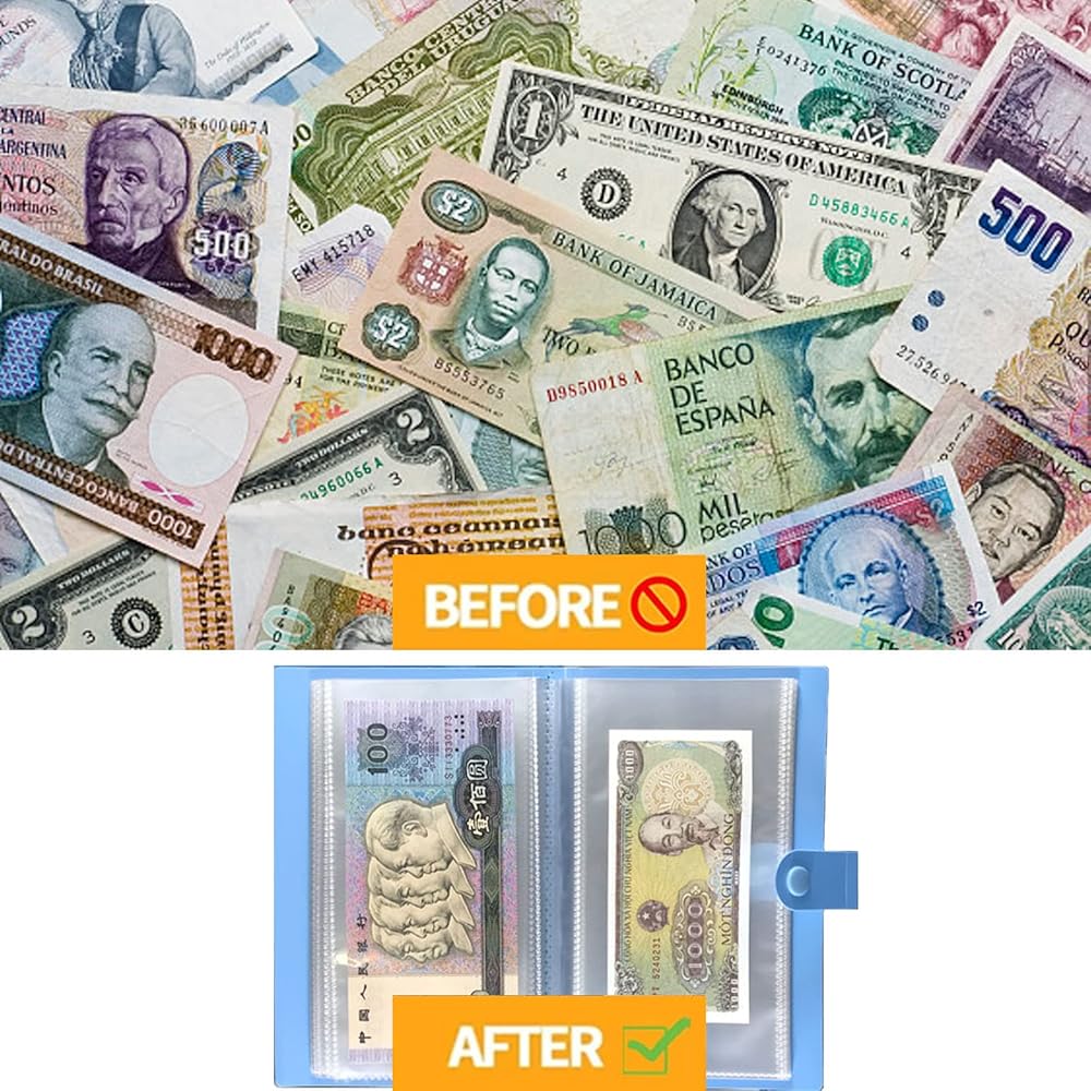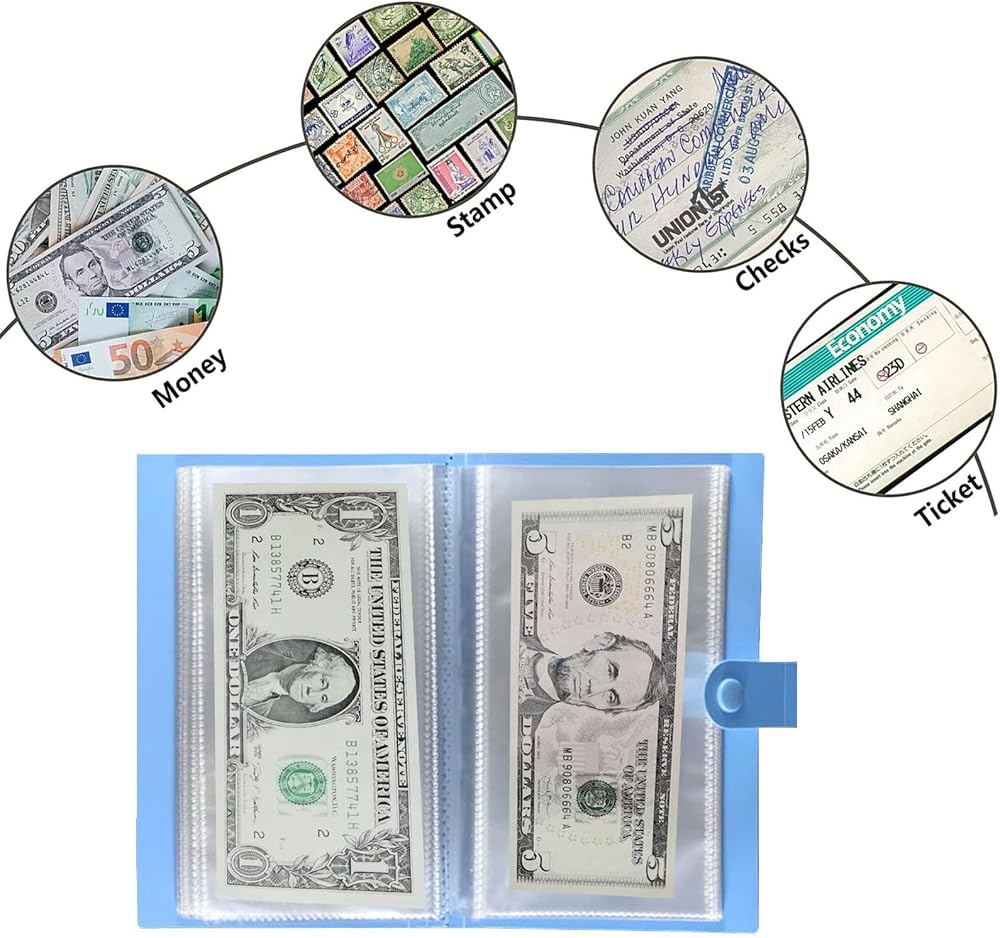 1. [حاملات فواتير الدولار لهواة التجميع] 50 صفحة داخلية إجمالية، تخزين على الوجهين، يمكن أن تحمل 100 فاتورة أو نقدًا في نفس الوقت.