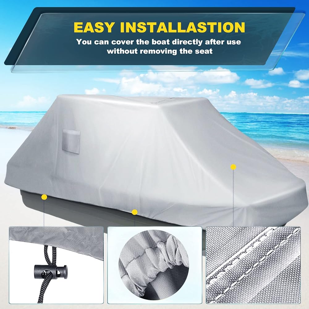 UPGRADED DESIGN: In addition to the elasticated design at the bottom, the boat cover has a drawstring to keep it in place and make it even more secure on windy days. There are vents on the sides of the cover to allow internal ventilation and keep the boat clean and dry.