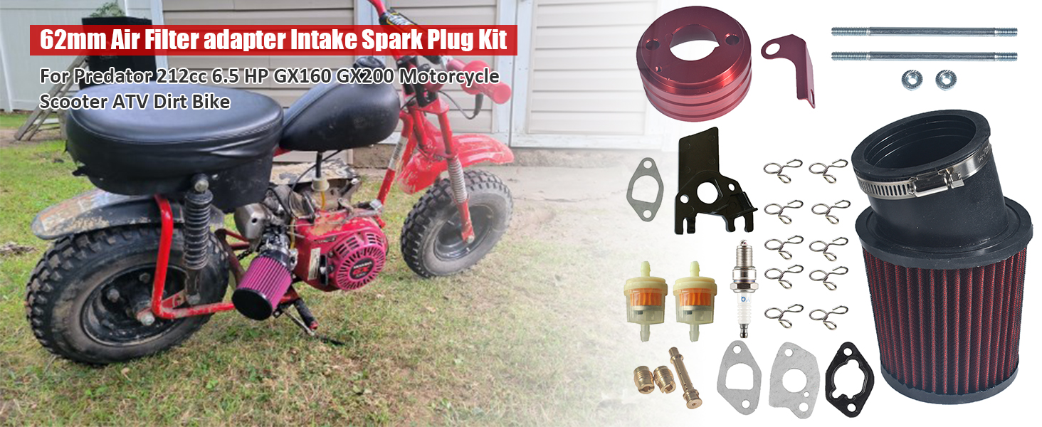 62 مللي متر محول مرشح الهواء كمية شرارة التوصيل عدة ل المفترس 212cc 6.5 HP GX160 GX200 دراجة نارية سكوتر ATV الترابية دراجة الأحمر