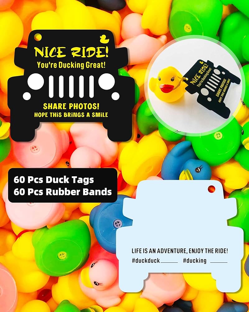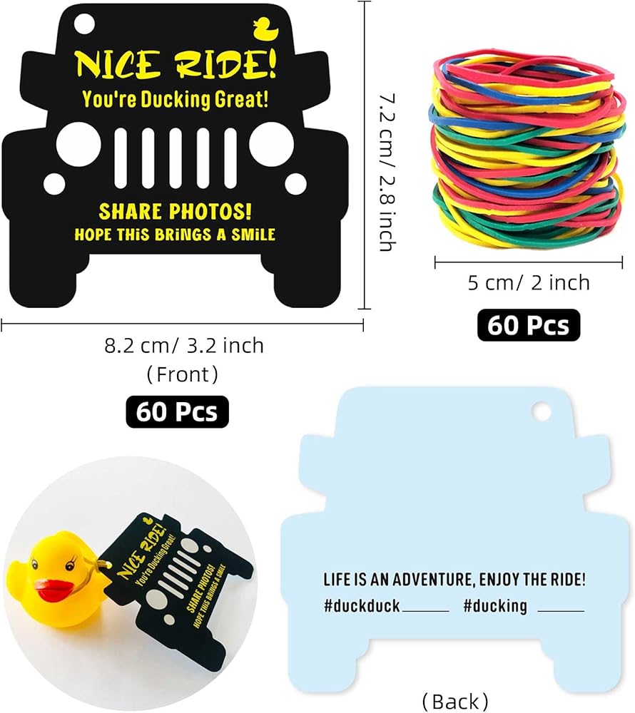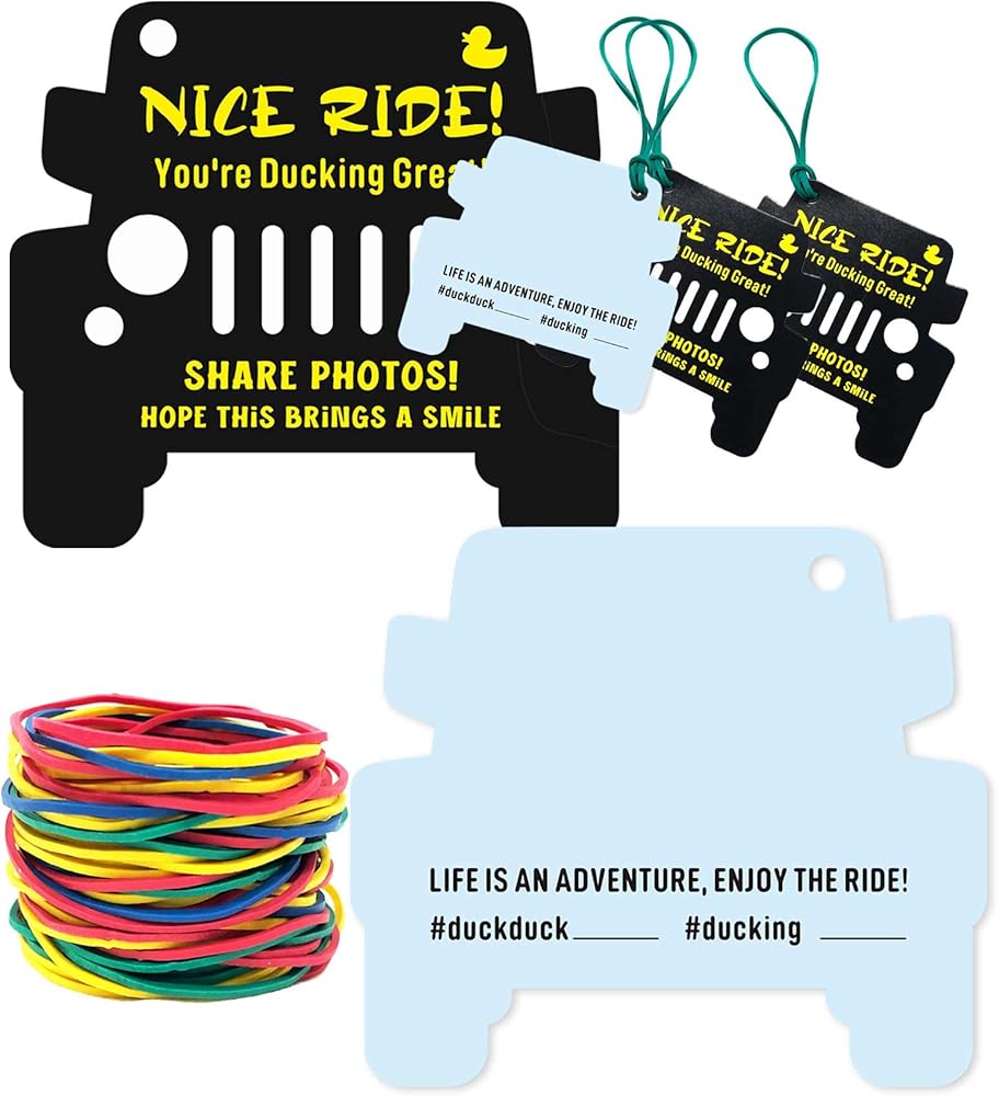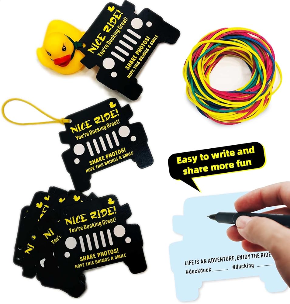 【هدية مثالية】تحتوي كل بطاقة بطة على فتحة، لذلك يمكنك تعليقها بسهولة في أي مكان باستخدام شريط مطاطي. إن نشر حب سيارات الدفع الرباعي من خلال بطاقات البط يجعل السيارة وحياتك أكثر متعة، مما يجعلها هدية مثالية لأصحاب سيارات الدفع الرباعي.