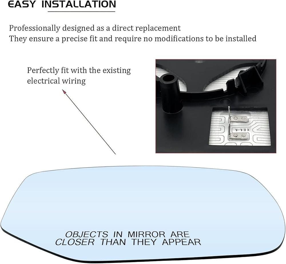 زجاج مرآة عالي الجودة على الجانب الأيسر - تحل هذه المرآة الجانبية محل زجاج المرآة المسخن من جانب السائق المكسور أو المفقود لضمان سلامتك خلف عجلة القيادة. مرآة الرؤية الجانبية الخاصة بنا مصممة كبديل مباشر، وتوفر رؤية أفضل، وتحسن سلامتك.