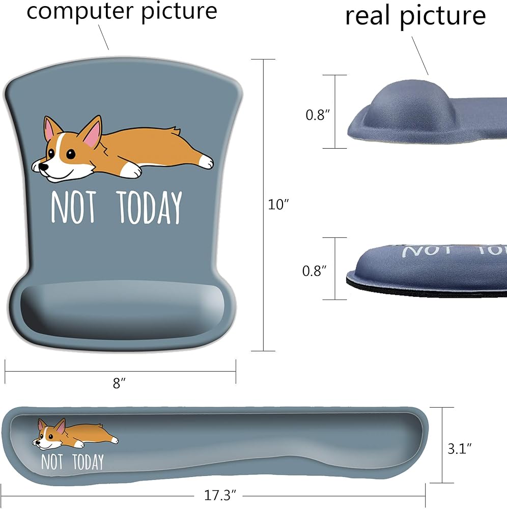 الحجم الأمثل: مقاس وسادة مسند المعصم للوحة المفاتيح 44 × 8.3 × 2.2 سم (17.3 بوصة × 3.3 بوصة × 0.87 بوصة)، تدعم لوحة الماوس 25 × 20 × 2.2 سم (9.8 بوصة × 7.9 بوصة × 0.87 بوصة). الطباعة واضحة وحساسة، وليس من السهل ارتداؤها. مما يجعل مجموعة الوسائد هذه مناسبة لكل من الرجال والنساء، ولجميع أنواع المناسبات مثل العمل أو الاجتماعات أو الألعاب أو غيرها.