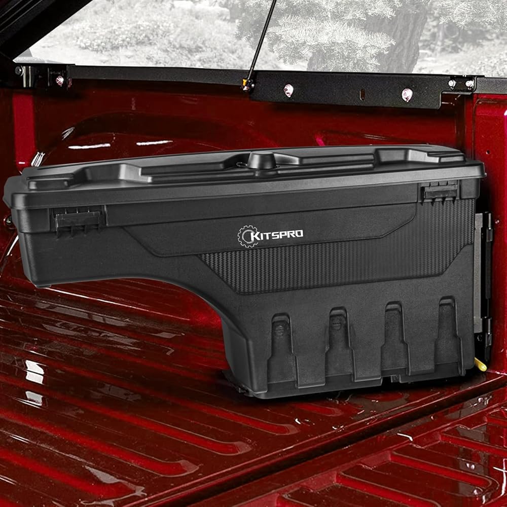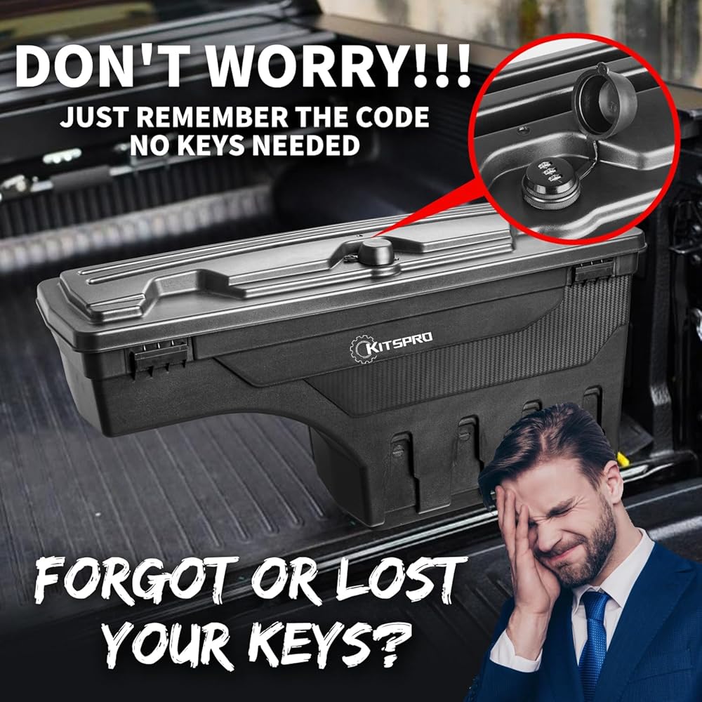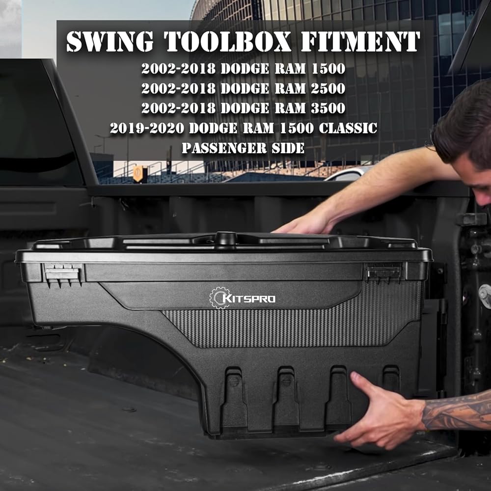 صندوق أدوات سرير الشاحنة KitsPro لـ 2002-2018 Dodge Ram 1500 2500 3500 و2019-2020 Dodge Ram 1500 جانب الركاب الكلاسيكي، صندوق أدوات تخزين قابل للدوران مع قفل مجموعة بدون مفتاح