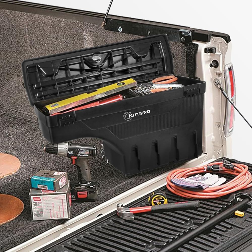 ✔【مقاومة للرطوبة】 تم تصميم صندوق أدوات سرير الشاحنة KitsPro بختم مقاوم للرطوبة لحماية أغراضك من الطقس القاسي. الصواني الداخلية تجعل من السهل وضع الأشياء الصغيرة وتنظيم متعلقاتك.
