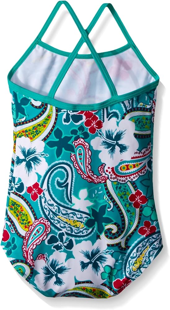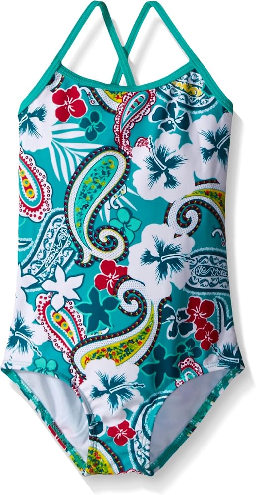 Kanu Surf presents our newest swim styles yet. Kanu, a surf and swim lifestyle brand, is well known for great prints and colors along with high quality functional apparel for the whole family. All of our swimwear is made with a high quality nylon/spandex tricot fabric and are lined both front and back. All of our prints are available in 1 or 2 piece options. Kanu swimwear is great for the active athlete as well as for the recreational swimmer. Our summer dream 1-piece swimsuit sports a cool floral paisley print. Available in all girls sizes infant thru 16 so sisters can hit the beach scene as a team.