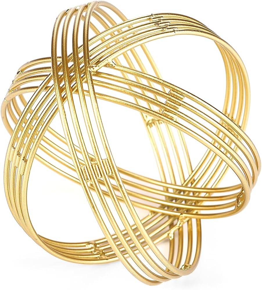 - مصنوعة من قضبان معدنية ملحومة تشكل حلقات على شكل شبكي بلمسة نهائية ذهبية لامعة