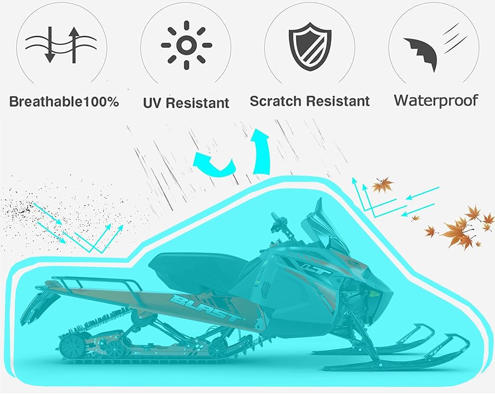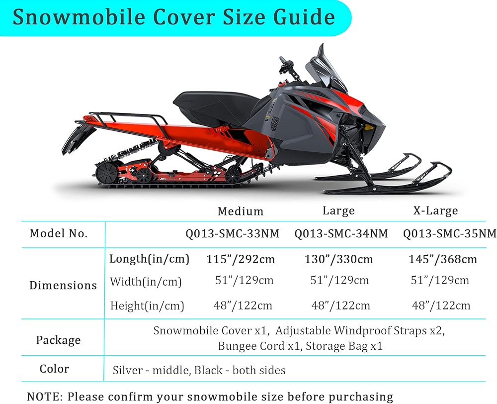 【الحجم والاستخدام】غطاء تخزين عالمي لعربات الثلج يناسب عربات الثلوج التي يصل حجمها إلى 130 بوصة طولًا × 51 بوصة عرضًا × 48 بوصة ارتفاعًا. يرجى التحقق من الصورة لمعرفة الطرز المتوافقة. ملاحظة: إذا لم تكن الزلاجة الخاصة بك مدرجة، فيرجى قياس المقاس والاتصال بنا قبل الطلب .