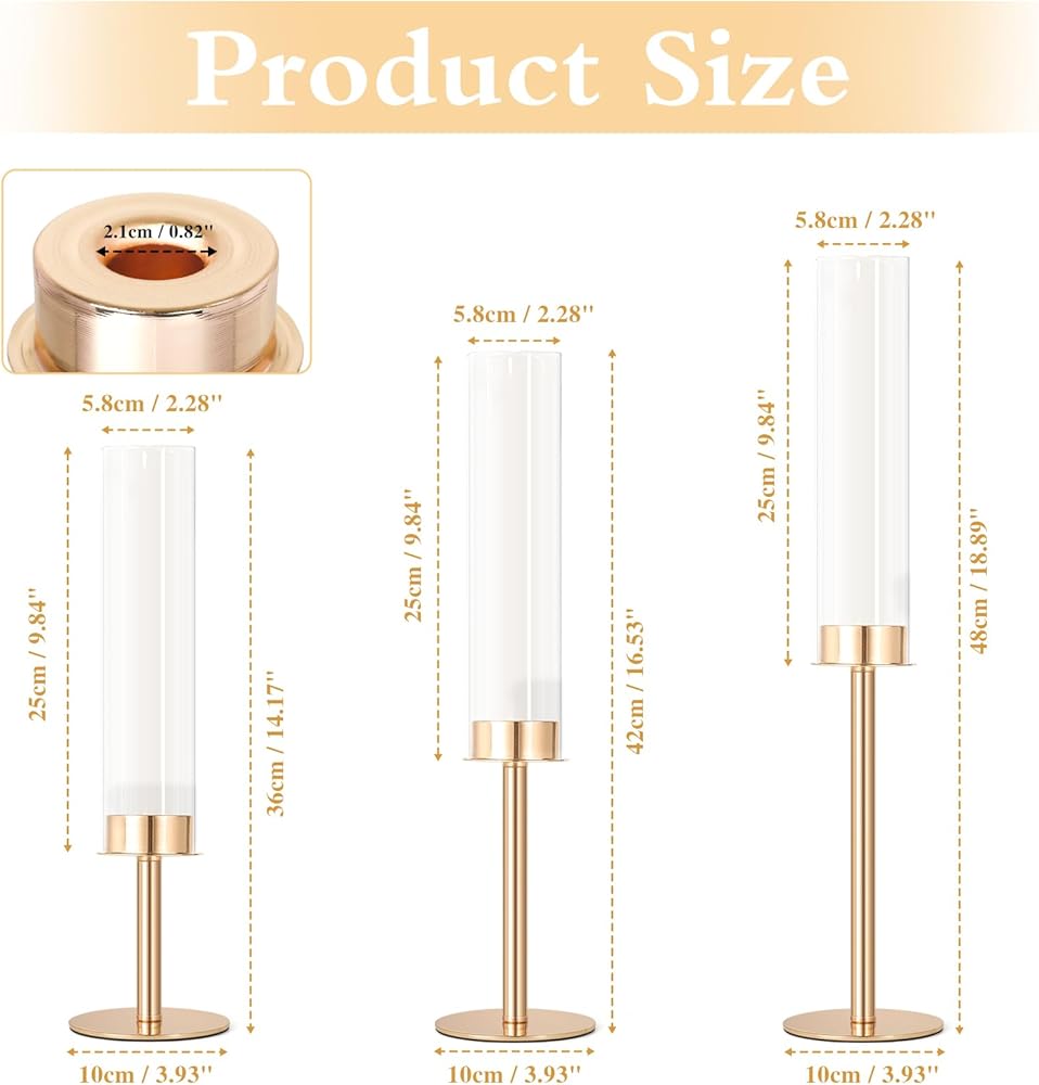💖【توفير المساحة وسهولة التجميع】مصممة ليتم تفكيكها، توفر حوامل الشموع الذهبية هذه للشموع مساحة تخزين ويمكن تجميعها بسهولة في دقائق. يضيف تشطيبها المعدني اللامع عنصرًا ملفتًا للنظر إلى ديكور مناسبتك، مما يجعلها إضافة أنيقة لأي مناسبة.