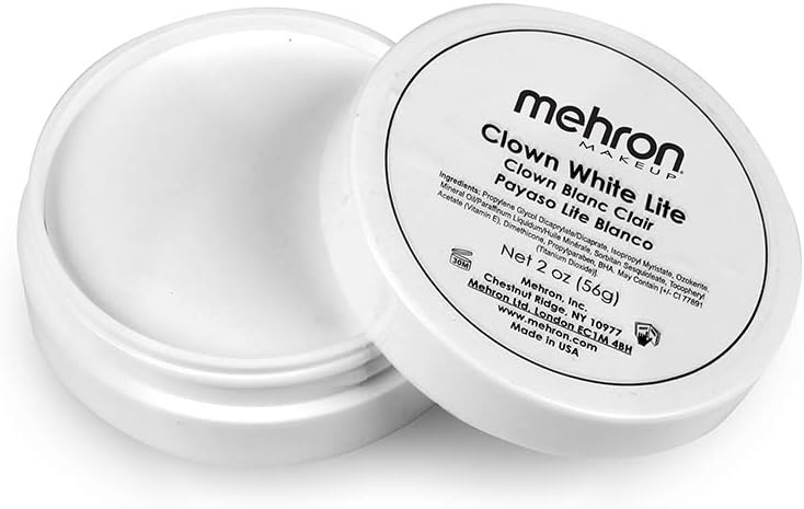 ميهرون مكياج مهرج وايت لايت | طلاء احترافي على الوجه وطلاء الجسم | مكياج كريمي أبيض، مكياج طلاء الوجه الأبيض لمكياج المهرج، والمسرح، والأفلام، والكوسبلاي، والتمثيل الصامت، والهالوين 2 أونصة (56 جم)