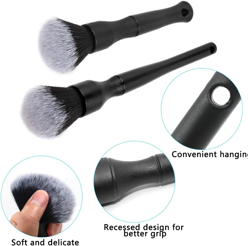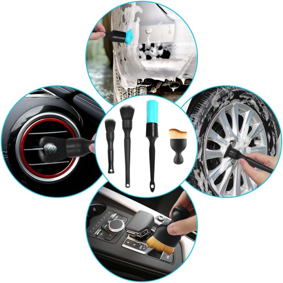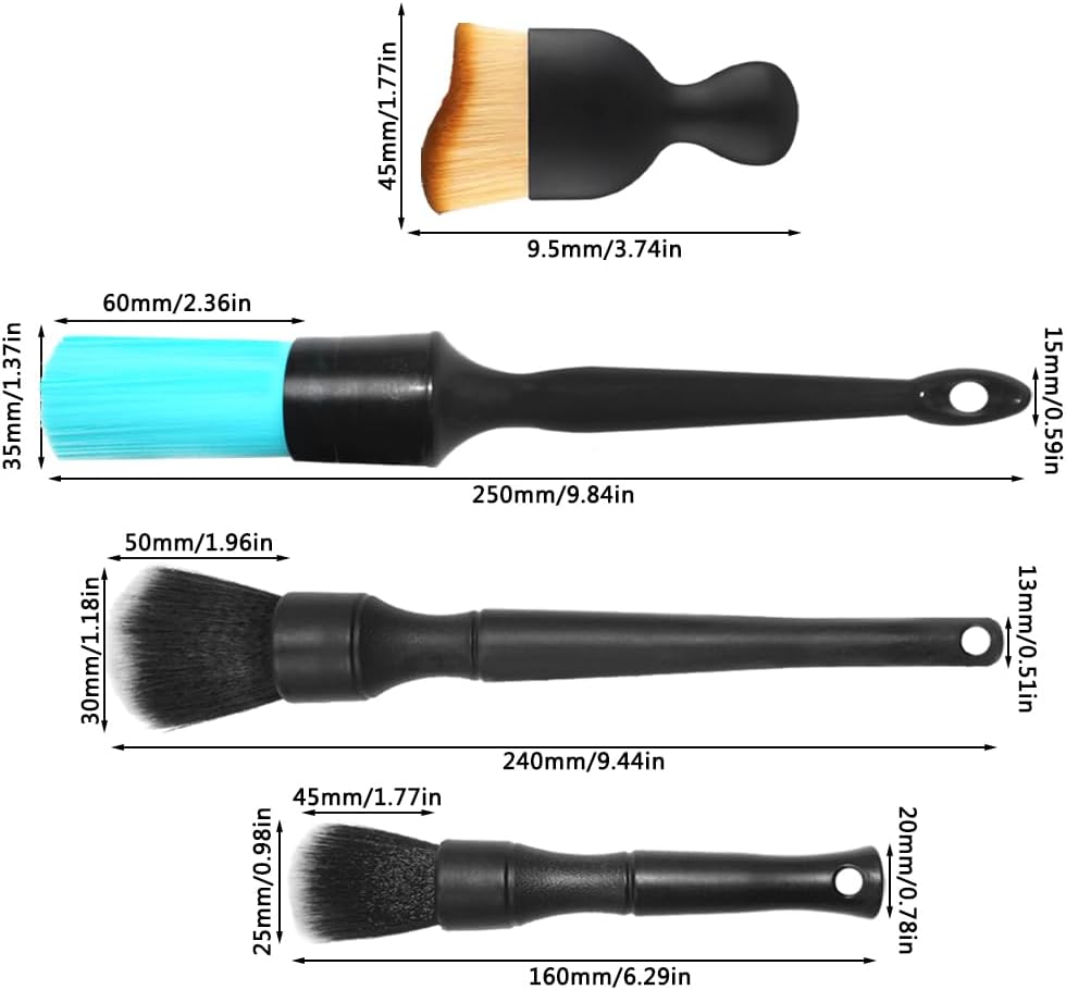 تشمل العبوة: سوف تحصل على فرشتين فائقتي النعومة، وفرشاة محرك ذات شعيرات زرقاء وفرشاة تفاصيل داخلية للسيارة.