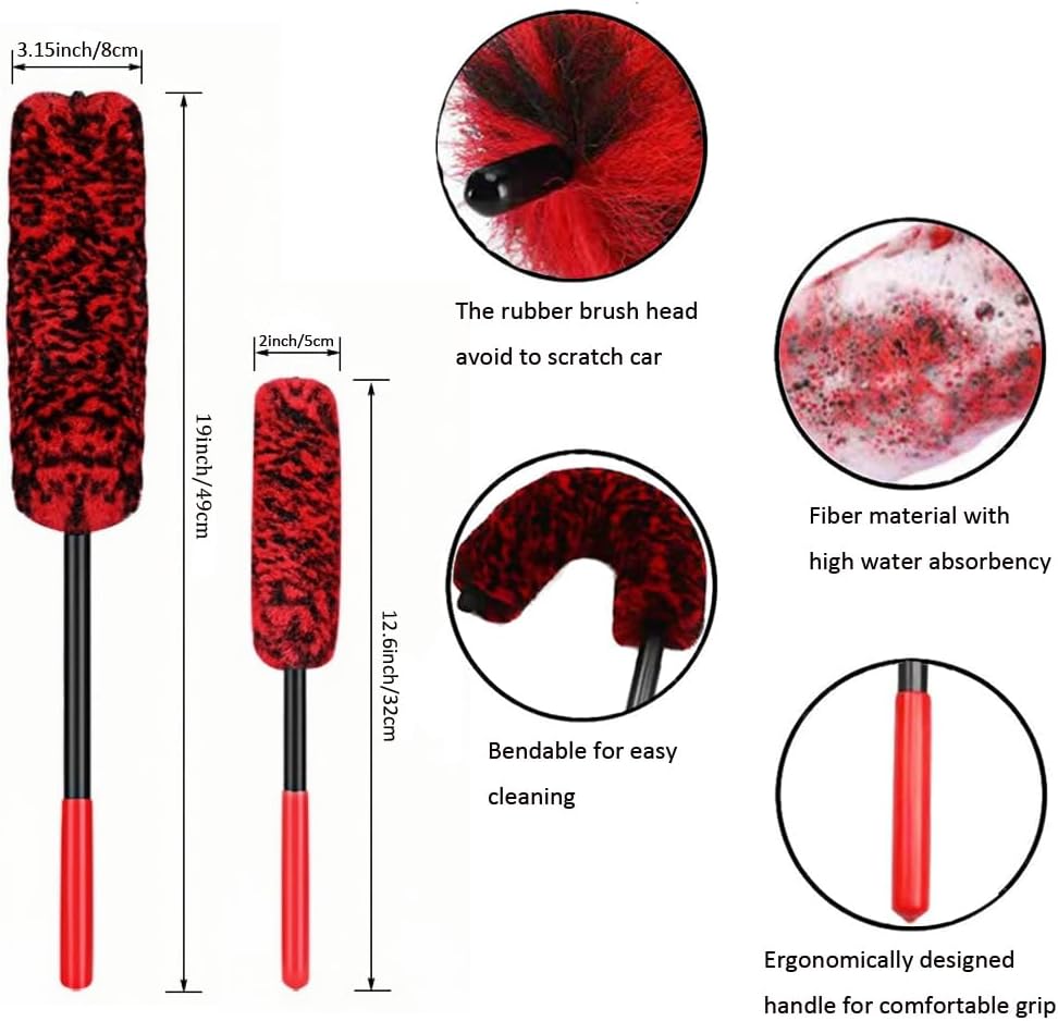 • مجموعة فرش العجلات: مجموعة فرش تنظيف عجلات السيارة (5 عبوات) تتضمن قطعتين من فرشاة الصوف الاصطناعية فائقة النعومة ورقيقة للغاية بأحجام مثالية، وقطعة واحدة من فرشاة الإطارات، وقطعة واحدة من فرشاة التفاصيل، وقطعة واحدة من وسادة وضع الملابس الكبيرة للإطارات. مجموعة فرشاة تنظيف عجلات السيارة مثالية لعجلات وإطارات السيارة.