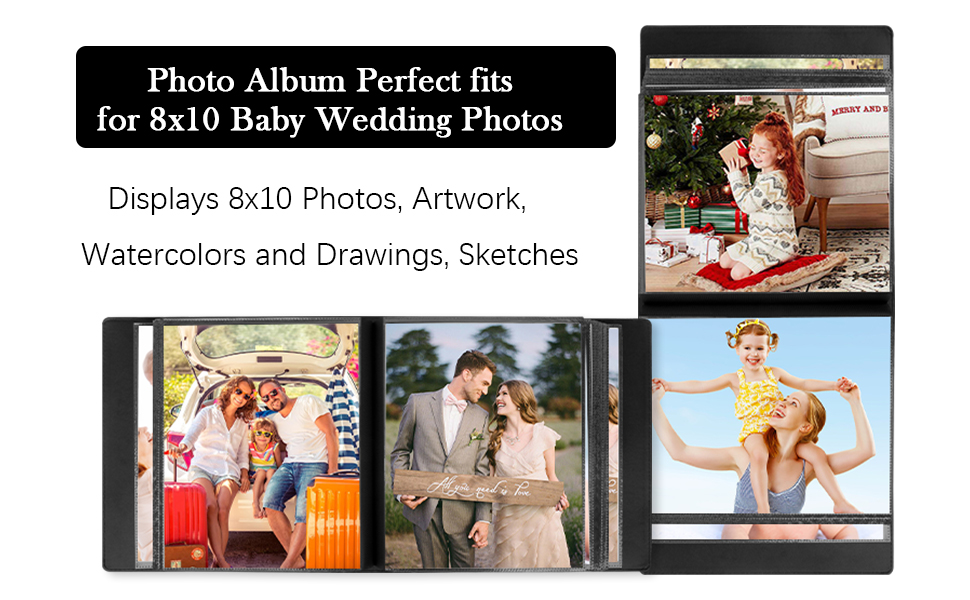 ألبوم الصور الخاص بنا مقاس 8x10 مصنوع من جلد عالي الجودة متين بما يكفي ليدوم لسنوات. يتم تخزين الصور في صفحات واضحة وآمنة وخالية من الأحماض لحماية صورك المفضلة مقاس 8 × 10 بوصة.