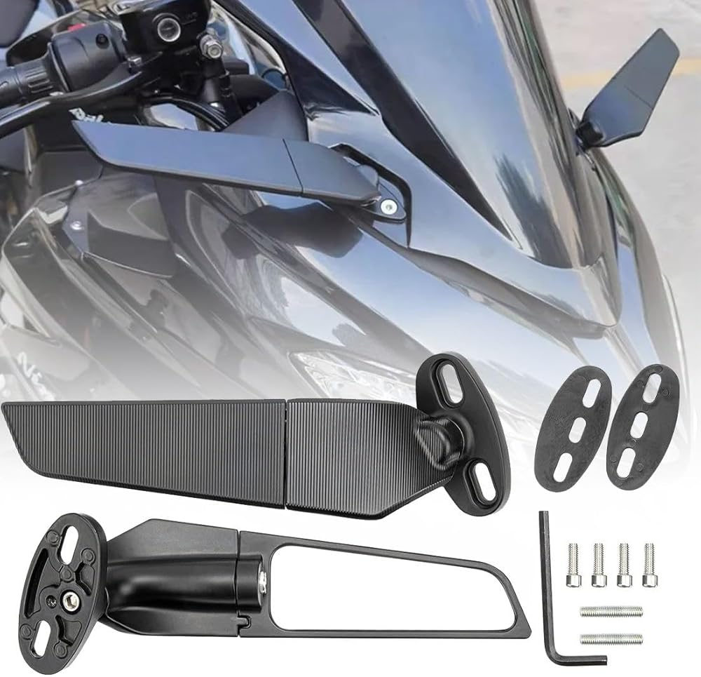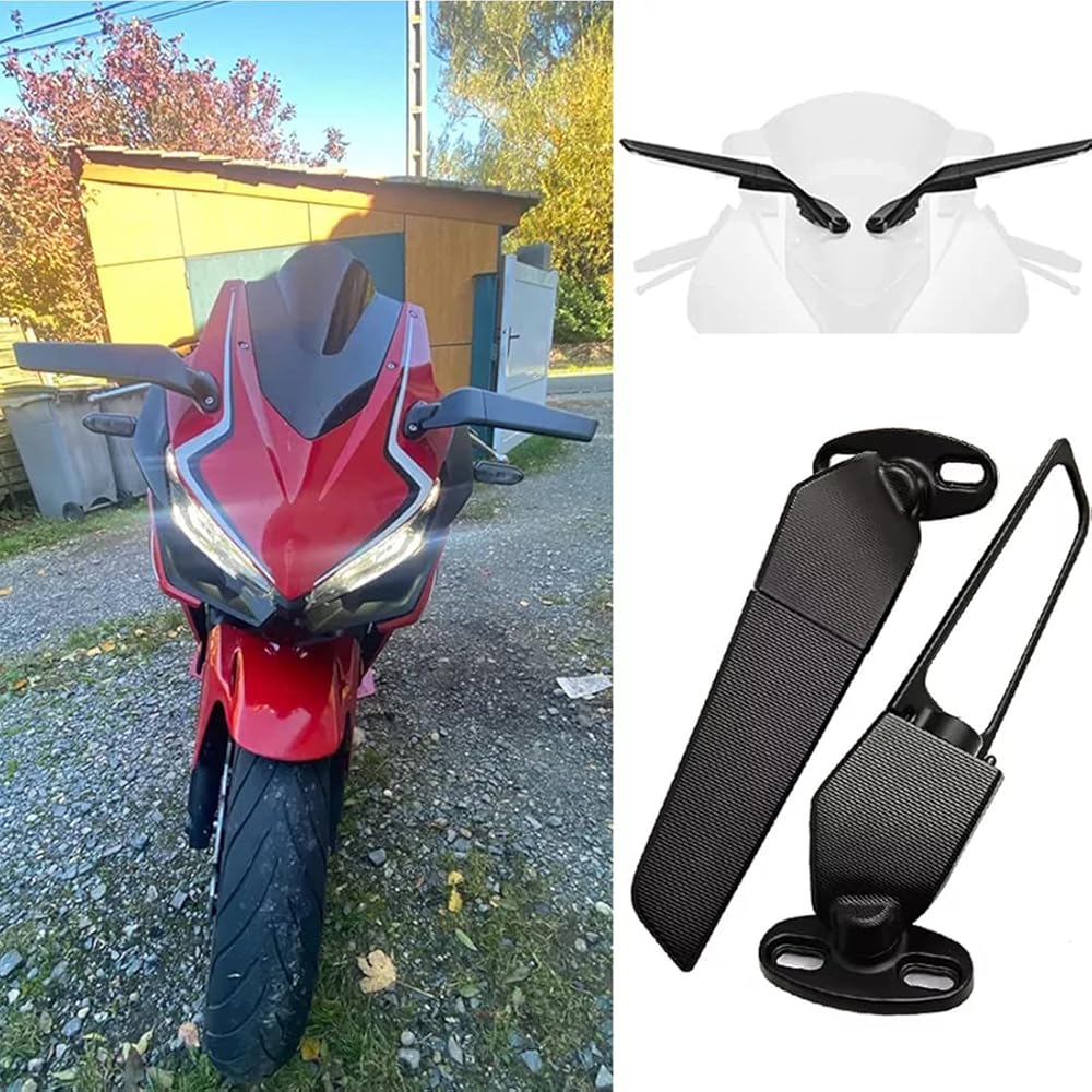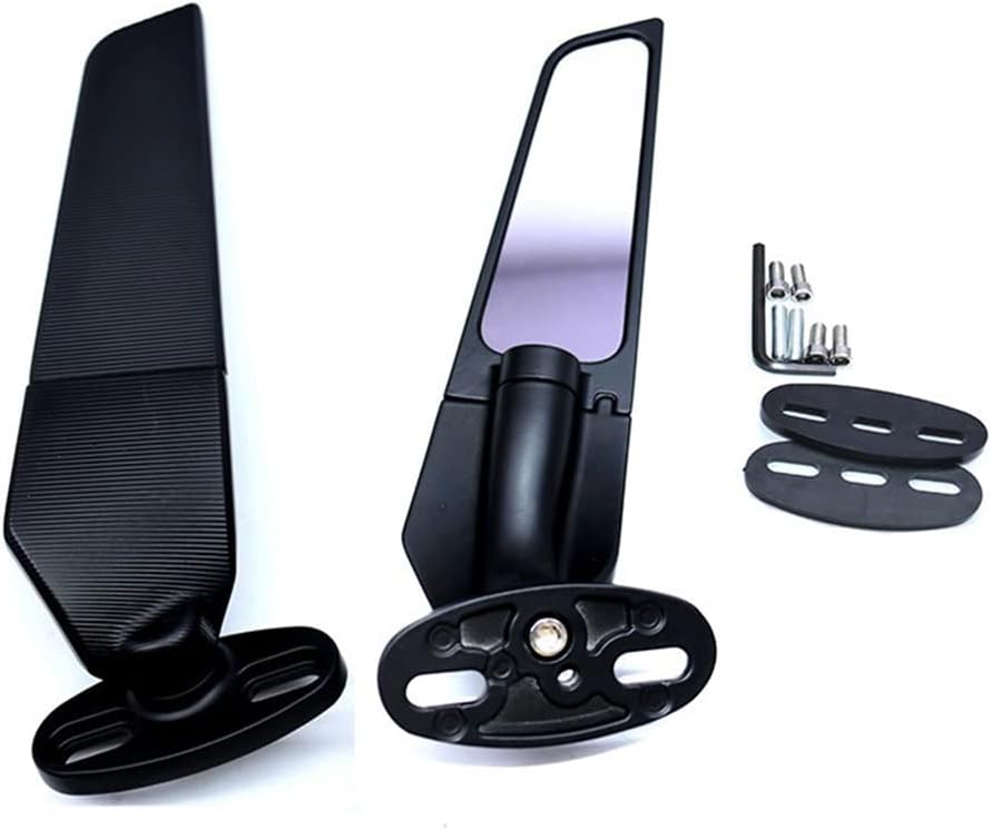【الملاءمة】مرآة الرؤية الخلفية للدراجة النارية هذه هي مرآة فريدة يمكن تحويلها إلى جناح ديناميكي هوائي، مما يجعلها مثالية للدراجات الرياضية الفائقة. متوافق مع ياماها R15 R25 R3 R1 R1S R6 R6S V2 V3، كاواساكي نينجا 250 300 400 650 H2 H4.