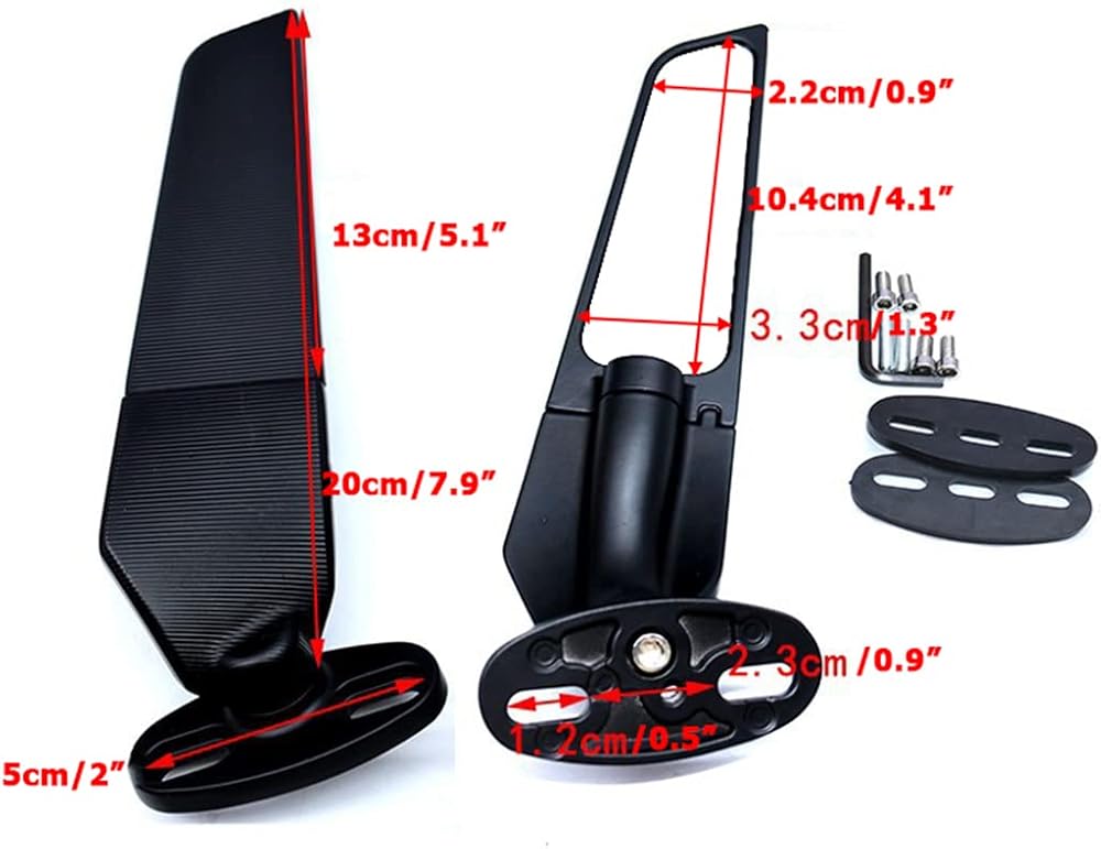 【تشمل العبوة: 2 × جناح رياح مرآة الرؤية الخلفية للدراجة النارية. نحن واثقون من جودة جناح الرياح المرآة لهذه الدراجة النارية ونقدم خدمة ممتازة. إذا كان لديك أي أسئلة حول عملية الشراء، يرجى الاتصال بنا.