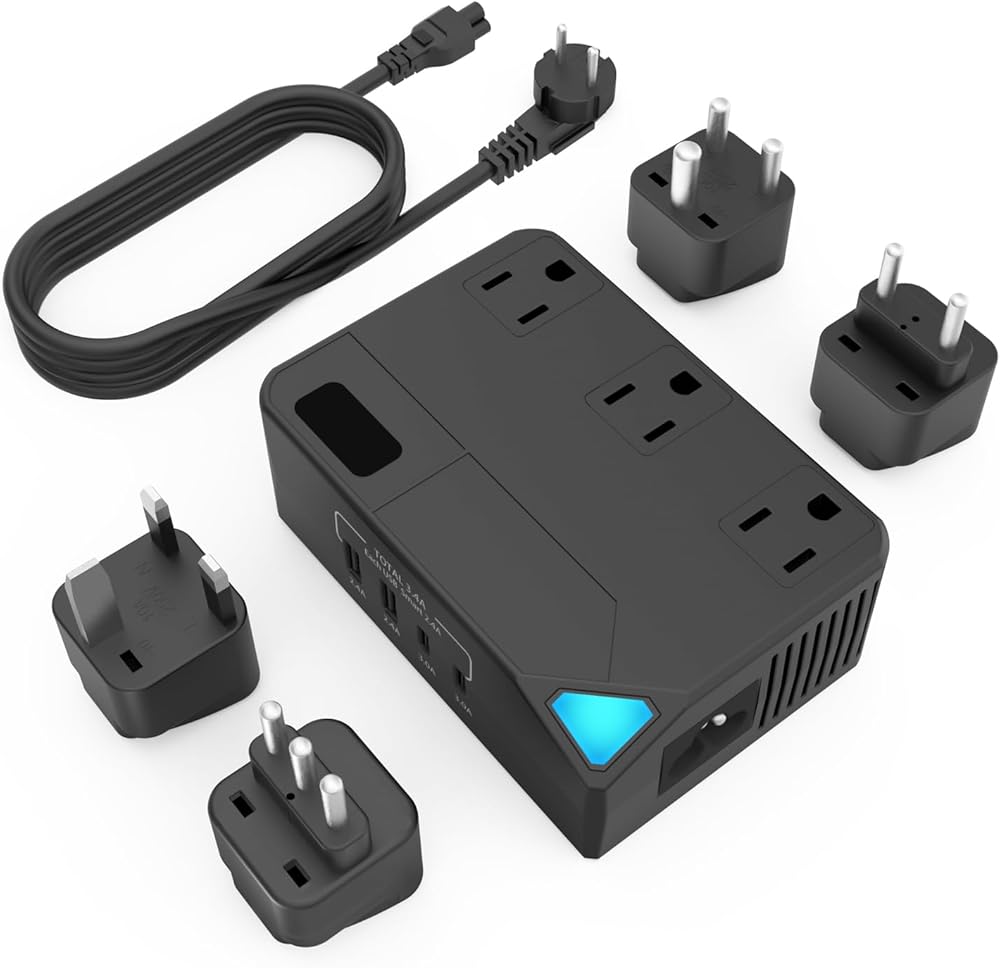 محول الجهد الكهربي من الولايات المتحدة إلى أوروبا ومجموعة محول الطاقة، محول سفر عالمي 2300 وات 220 فولت إلى 110 فولت، محول سفر لمجفف الشعر، 4 محول طاقة، محول تنحي للمملكة المتحدة وإيطاليا،... (أسود)