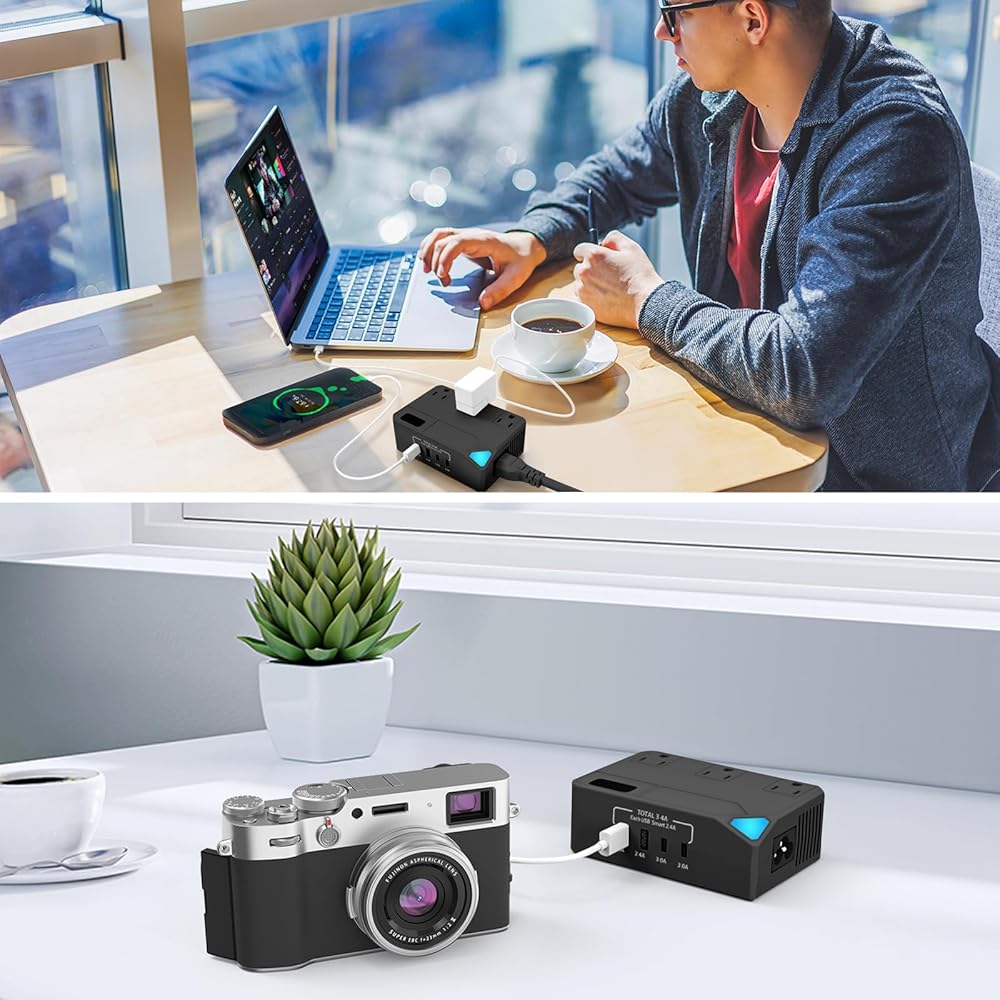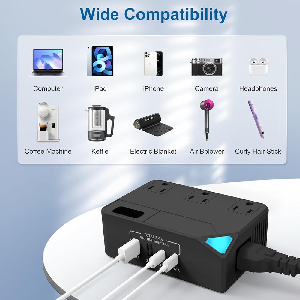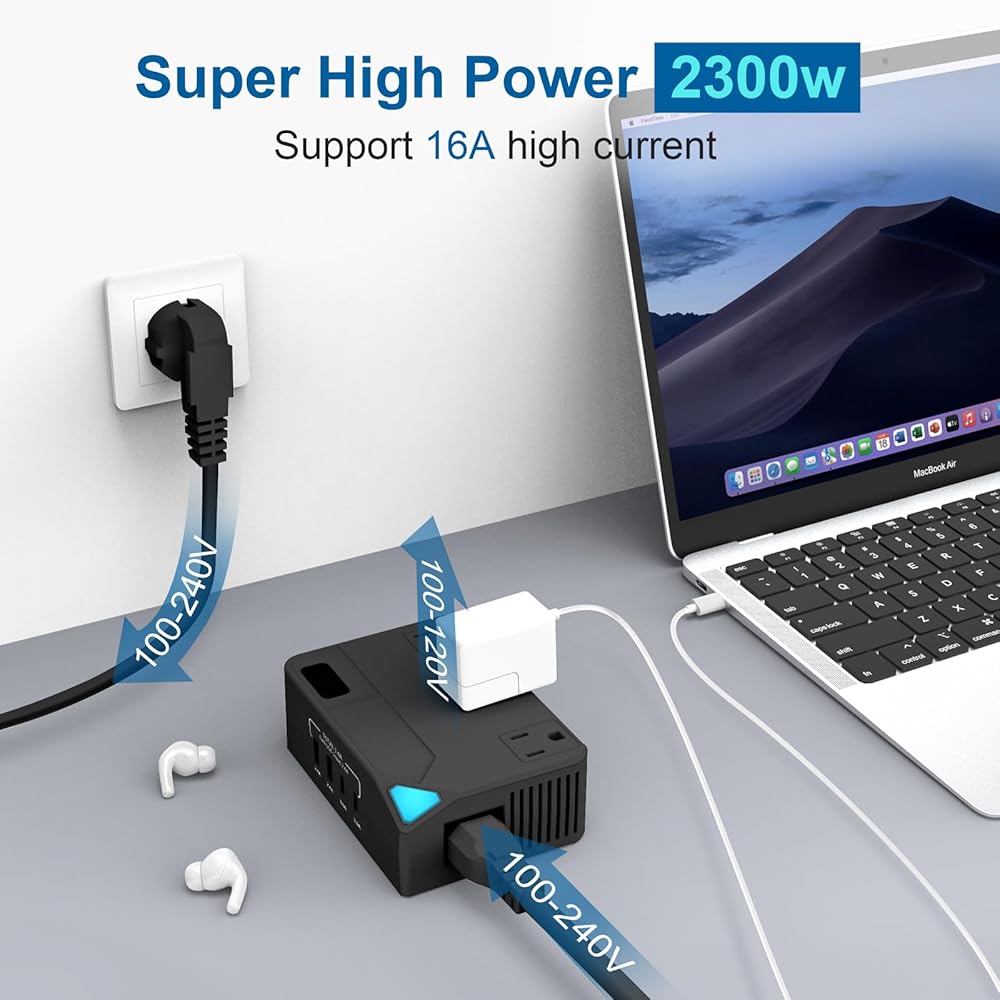 [طاقة عالية جدًا] تدعم طاقة الإخراج 2300 وات، لذلك يمكنك استخدام أي جهاز كهربائي عالي الطاقة، حتى سخان المياه. وهو يدعم العديد من أنواع الأجهزة المختلفة، بما في ذلك الهواتف المحمولة وأجهزة الكمبيوتر المحمولة والأجهزة اللوحية والكاميرات والغلايات والمصابيح المكتبية والشعر. مجففات، فرشاة أسنان كهربائية، شفرات حلاقة، مكواة تجعيد، غسالات صغيرة، والمزيد..