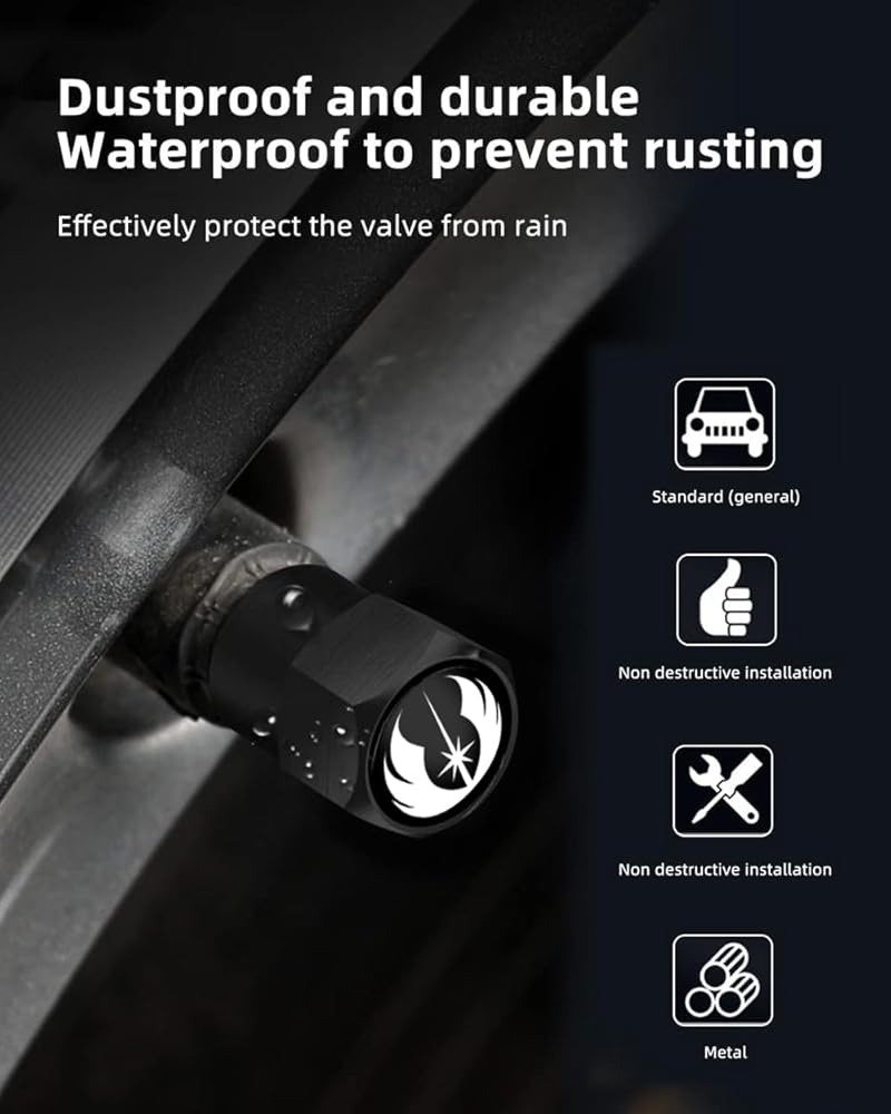 Metal air valve cap tough enough to withstand inclement weather, long road trips and rugged outdoor adventures no matter your vehicle or destination.