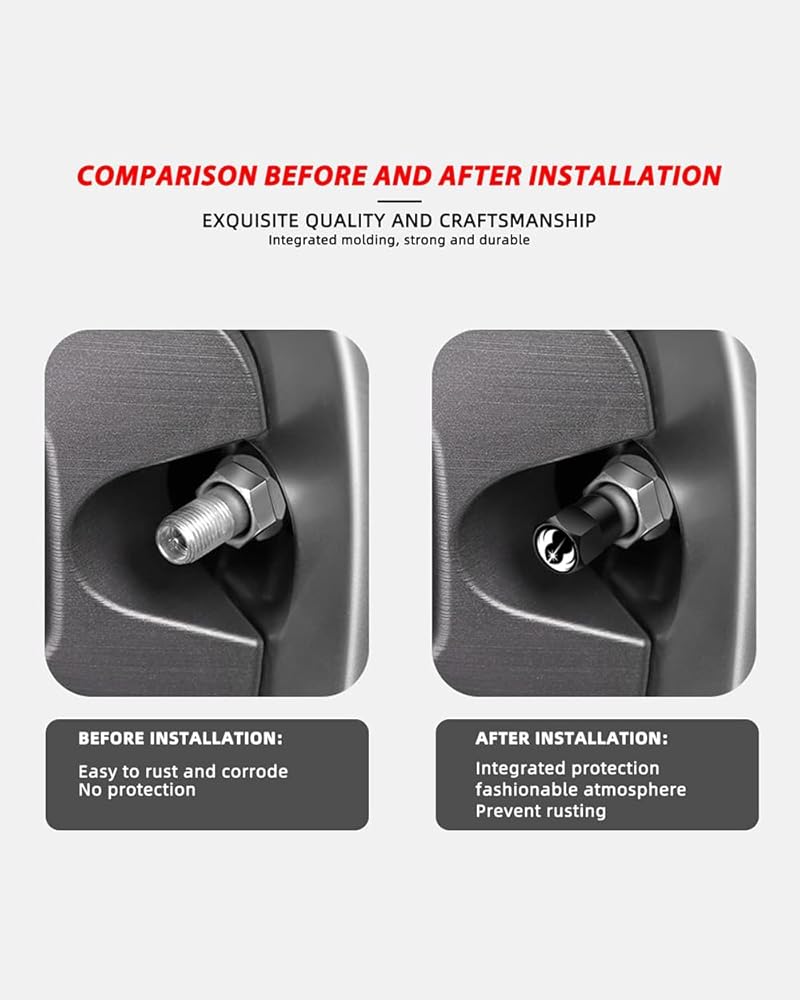 To prevent the metal valve cap from fusing with the tire valve stem, please apply grease lubricant to the thread of the valve stem before installation.