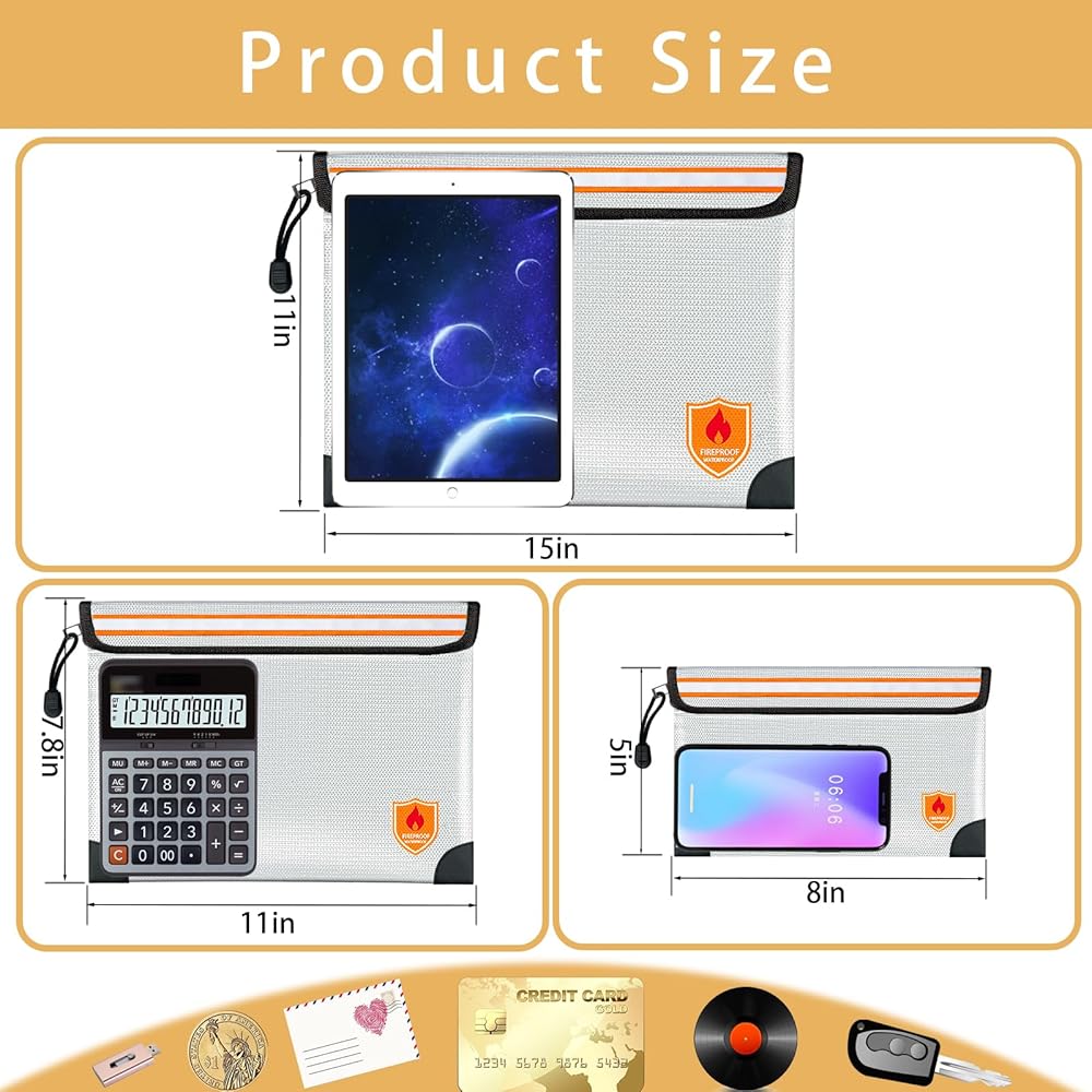 متوفرة في مجموعة متنوعة من الأحجام: بما في ذلك حقيبة مستندات مقاومة للحريق مقاس 15 × 11 بوصة، ومظروف مقاوم للحريق مقاس 11 × 7.8 بوصة، وحقيبة نقود صغيرة مقاومة للحريق مقاس 8 × 5 بوصة، مثالية لتخزين العناصر القيمة مثل أجهزة الكمبيوتر المحمولة والأجهزة اللوحية والهواتف ومحركات أقراص USB والأقراص المدمجة والشهادات والمجوهرات والمفاتيح ودفتر المرور البنكي والمستندات القانونية والنقود والعملات المعدنية وبطاقات الائتمان والرسائل والصور الثمينة وتراخيص الزواج وجوازات السفر والمزيد. يمكنك اختيار الحجم الذي يناسب احتياجاتك.