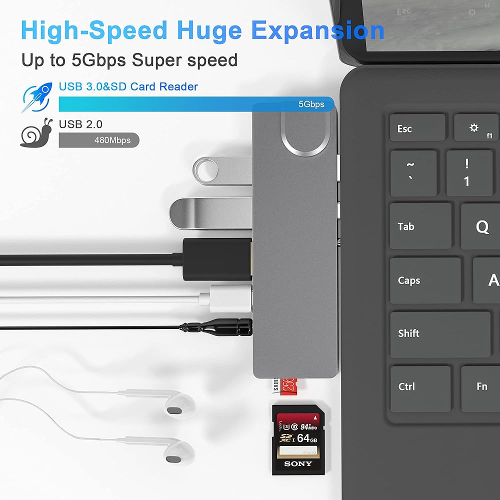 For Surface Laptop 3/Laptop Go Hub supports super faster data transfer up to 5Gbps, 10X faster than USB 2.0.Transfer a movie in seconds.Backward compatible with USB 2.0/1.0 devices.