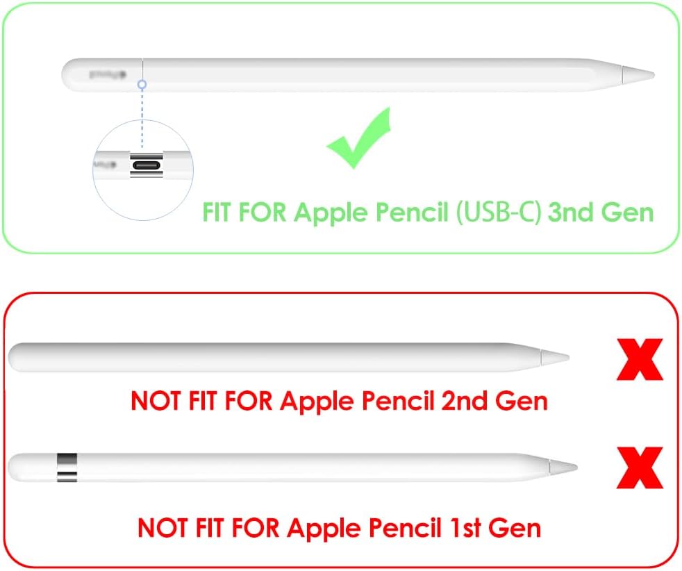 • Compatible with: this sleeve holder is for ONLY 3rd Gen Apple Pencil (USB-C). NOT FIT FOR Apple Pencil 1st Gen and 2nd Gen