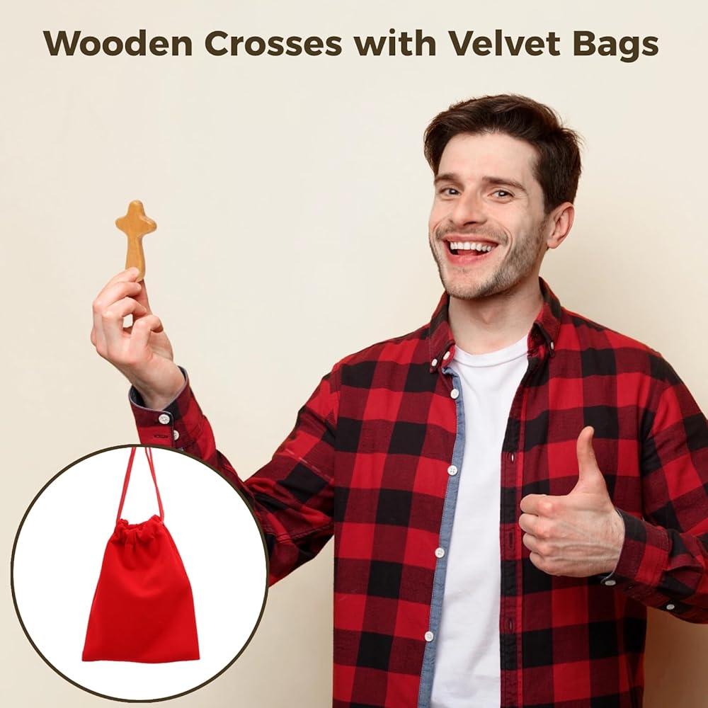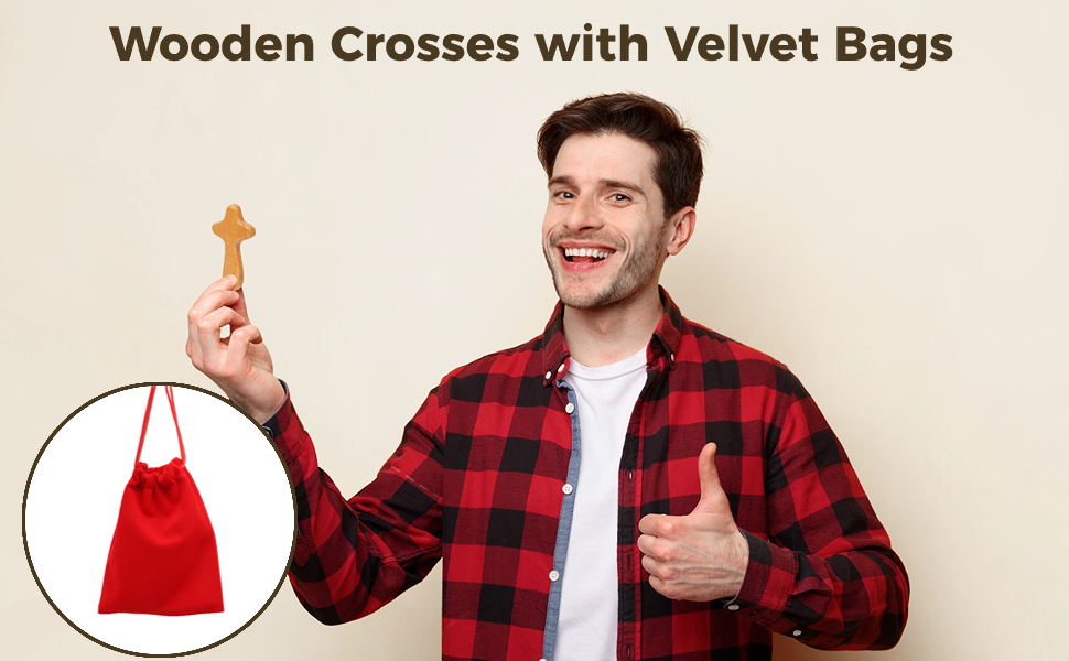 【مجموعة الصلبان الكاملة】 سوف تحصل على مجموعة كاملة من 6 صلبان خشبية صغيرة إلى جانب 6 حقائب مخملية فاخرة، مما يضمن حصولك على كمية كافية لتلبية احتياجاتك اليومية. هذه الحزمة المريحة ليست متعددة الاستخدامات فحسب، بل توفر أيضًا راحة البال للاستخدام الشخصي والهدايا