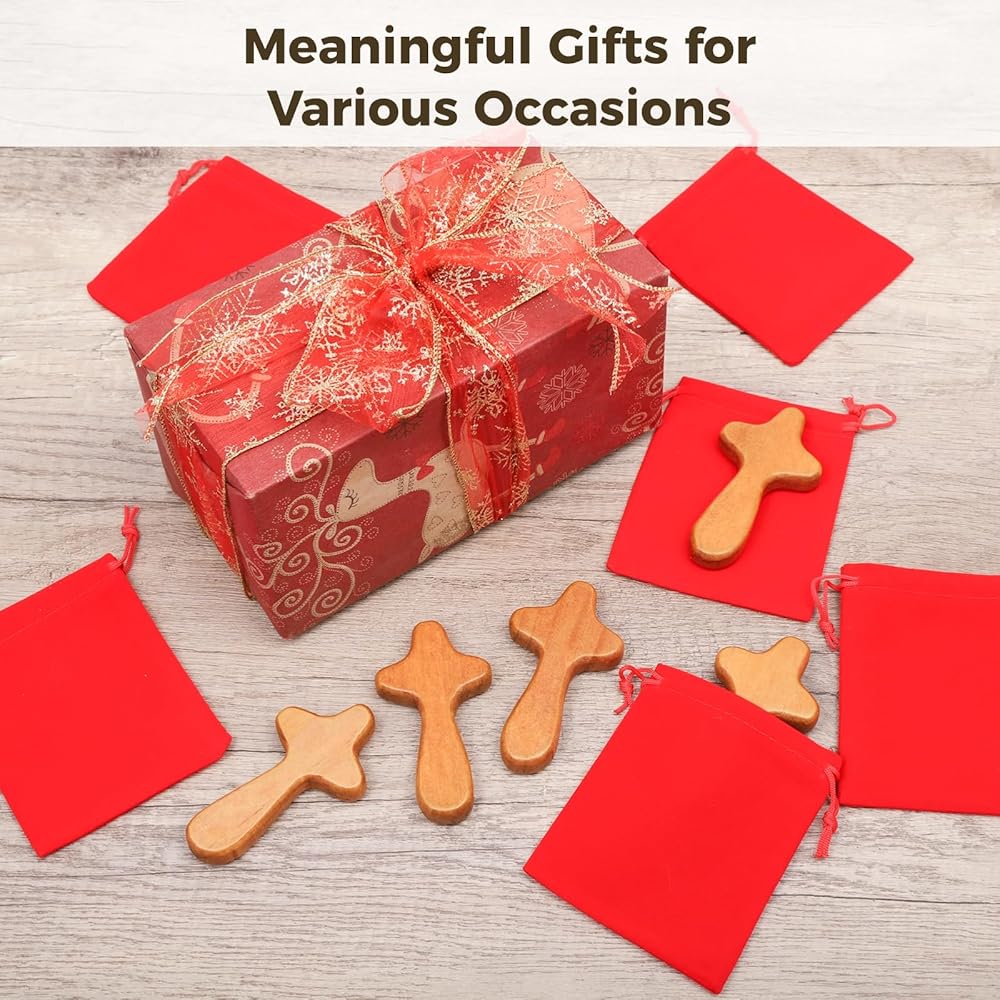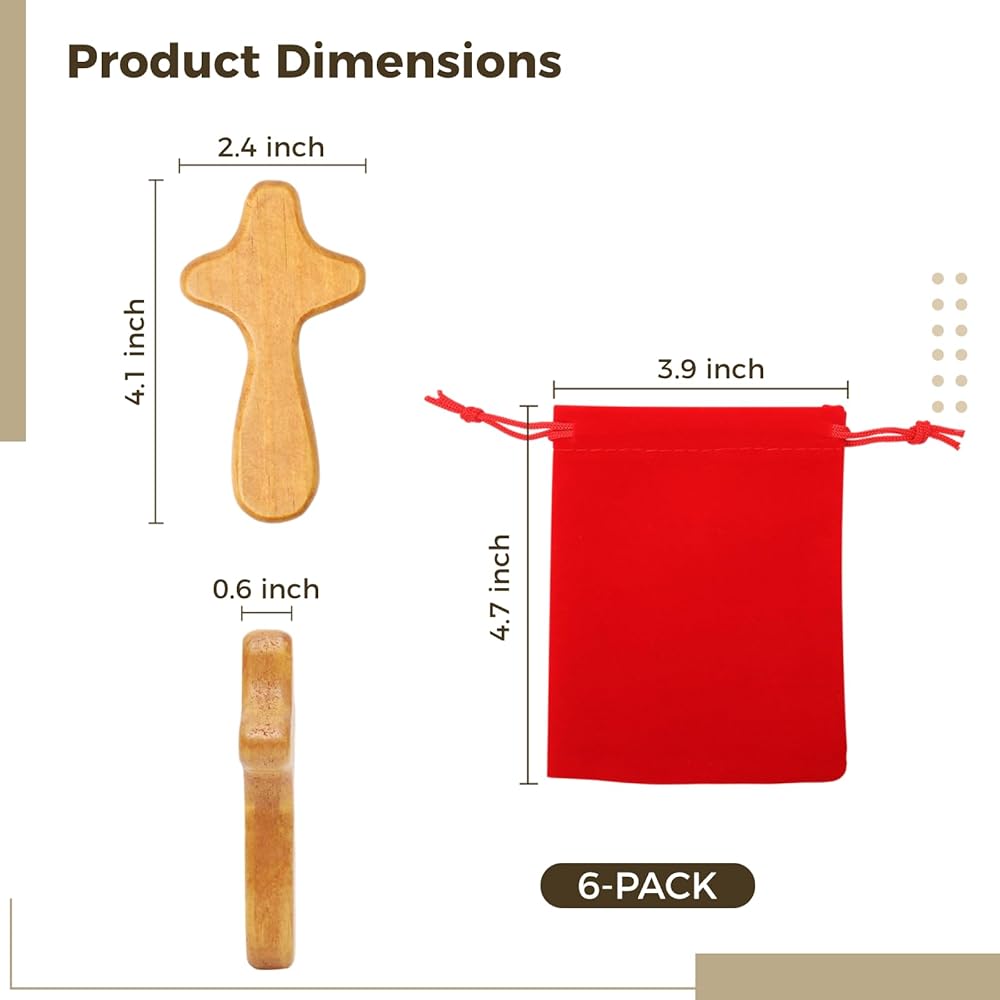 【صلبان صلاة بحجم كف اليد】 يبلغ قياسها تقريبًا 10.4 × 6 × 1.5 سم (4.1 × 2.4 × 0.6 بوصة)، صُممت صلبان الصلاة لدينا بعناية لتناسب راحة يدك بشكل مريح. تم تصميم حقائب الهدايا المخملية الحمراء المتضمنة، بمقاس 10 × 12 سم تقريبًا (3.9 × 4.7 بوصة)، لتناسب الصلبان المصنوعة من خشب الصنوبر المحمولة جيدًا.