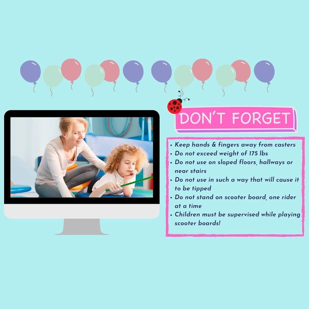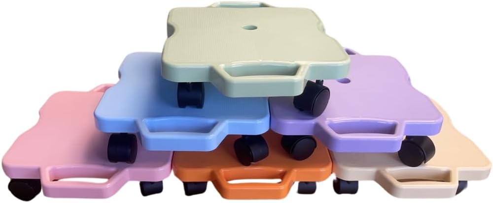 LET KIDS SCOOT, LET KIDS GLIDE, LET KIDS ROLL, LET THEM HAVE FUN! Shot Taker Co. yet again would like to introduce this wonderful scooter board with handles for your children and loved ones. This scooter board is perfect for kids to build up their core strength and body balance while having fun in an indoor place. The heavy-duty plastic construction provides an excellent durability. The board is measured approximately 16” x 12” x 4” and can hold up to 175lbs The smart 360-degree rotating wheels design allows kids to have the maximum movement while riding the scoot board and turn effortlessly. Plastic wheels are designed to prevent damaging floors; handles would keep children's hands and fingers safe while providing steering and control of the board CAUTION: NEVER STAND ON BOARD! And only use under qualified supervision!