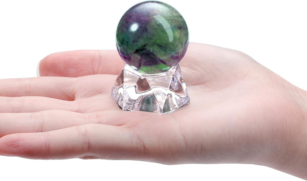 • Natural fluorite Healing Crystal Gemstone Sphere Divination Ball Sculpture Figurine With Acrylic Stand,Carved Stone for Crystals Healing Reiki Decoration, protection,Meditation Sphere, Feng Shui Crystals,Chakra Aura Balance