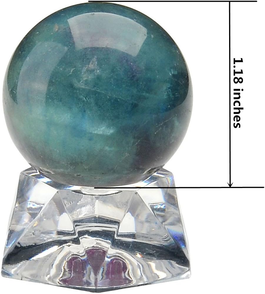 • SIZE: ball dia:1.14-1.18 inches(29-30mm); stand:30*30*15mm(LxWxH).Package Dimensions: 7.5cm*7.5cm*5cm. Weight is approximately 95 grams.Material: Natural fluorite crystal and Acrylic.