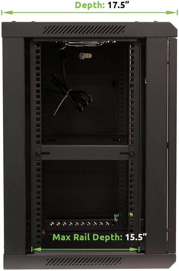 NavePoint 12U خادم شبكة مثبت على الحائط مقاس 19 بوصة خزانة حامل وقفل باب زجاجي مع أرفف