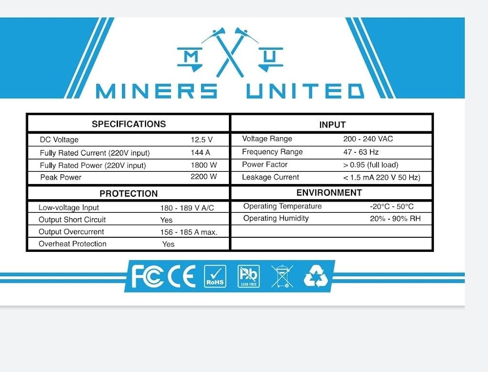 مزود طاقة بقدرة 1800 واط ASIC PSU BTC Bitcoin