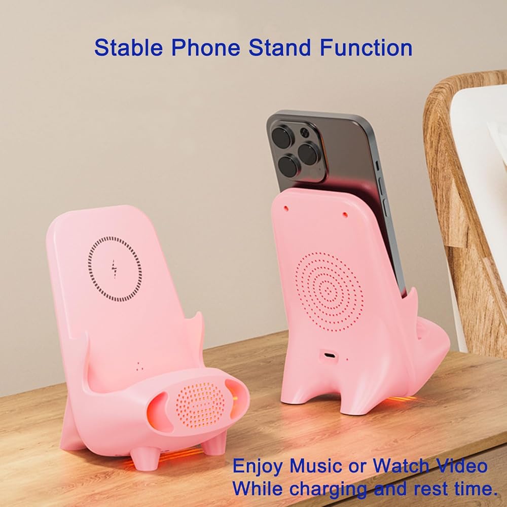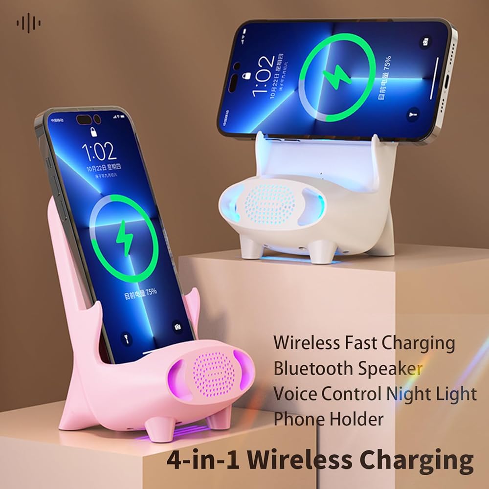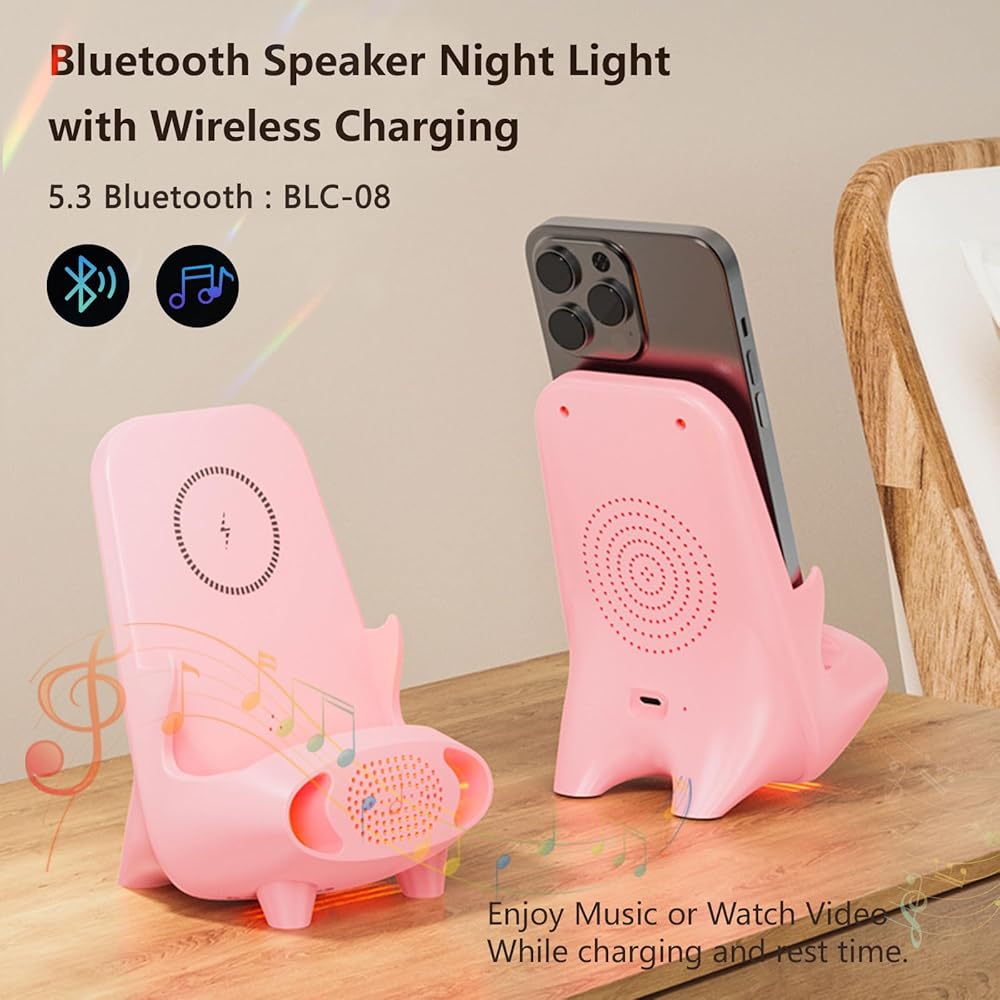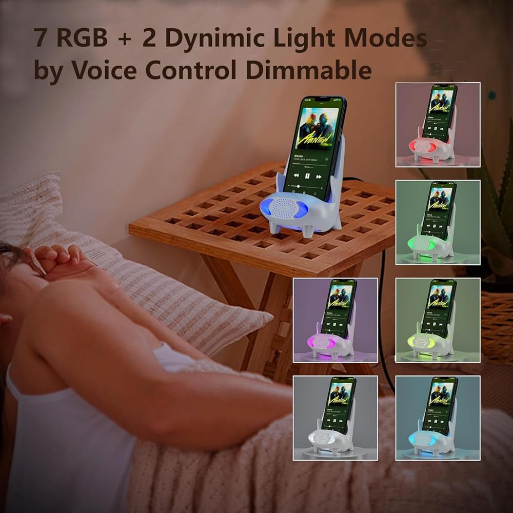✅إضاءة ليلية ووظيفة بلوتوث - يحتوي الشاحن اللاسلكي على ضوء ليلي للتحكم الصوتي، ويمكن تغيير الضوء الليلي ذو 7 ألوان بحرية، ويمكنك العثور على الشاحن اللاسلكي بدقة في الغرفة المظلمة. مجهزة بوظيفة بلوتوث، استمتع بساعات أكثر سعادة.