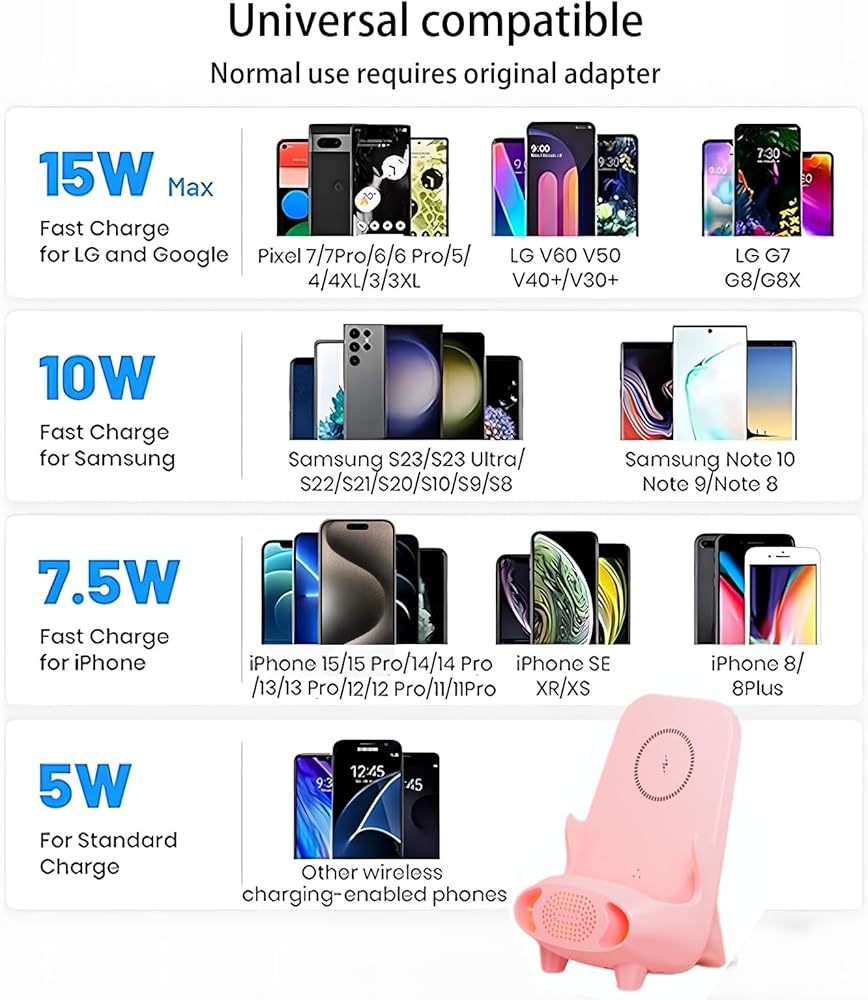 ✅شحن عالي السرعة - يوفر شاحن الشرائح المُحسّن شحنًا عالي السرعة بقدرة 15 وات لهواتف LG/Pixel؛ يوفر شحنًا بقدرة 10 وات لأجهزة Samsung، وشحنًا بقدرة 7.5 وات لأجهزة iPhone؛ ويدعم الهواتف الأخرى التي تدعم الشحن اللاسلكي ويوفر سرعة شحن تبلغ 5 وات.