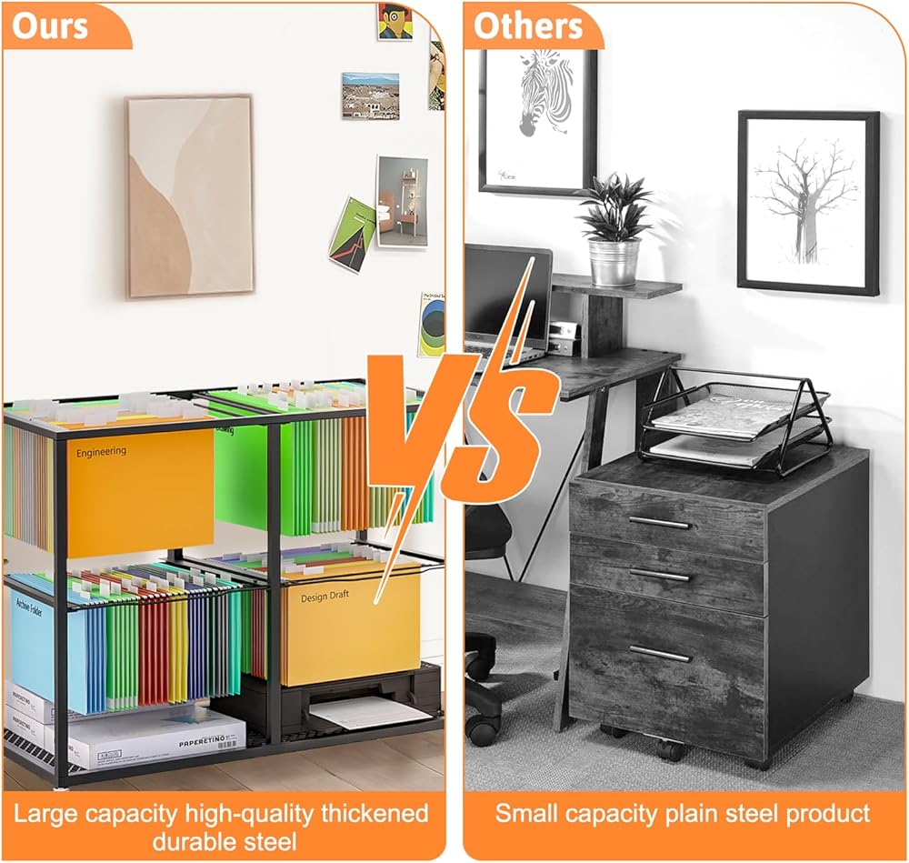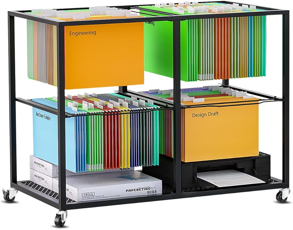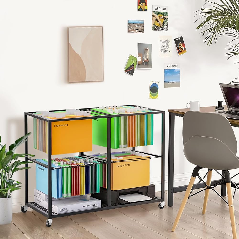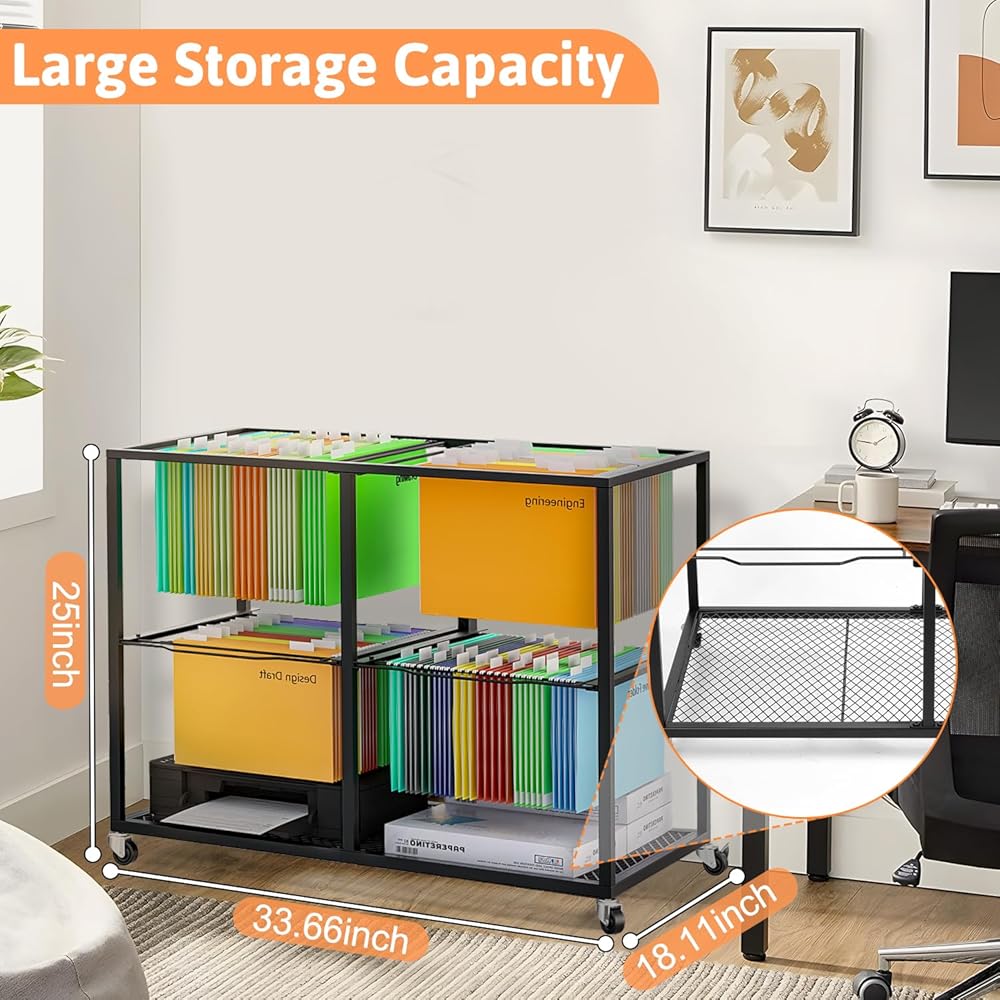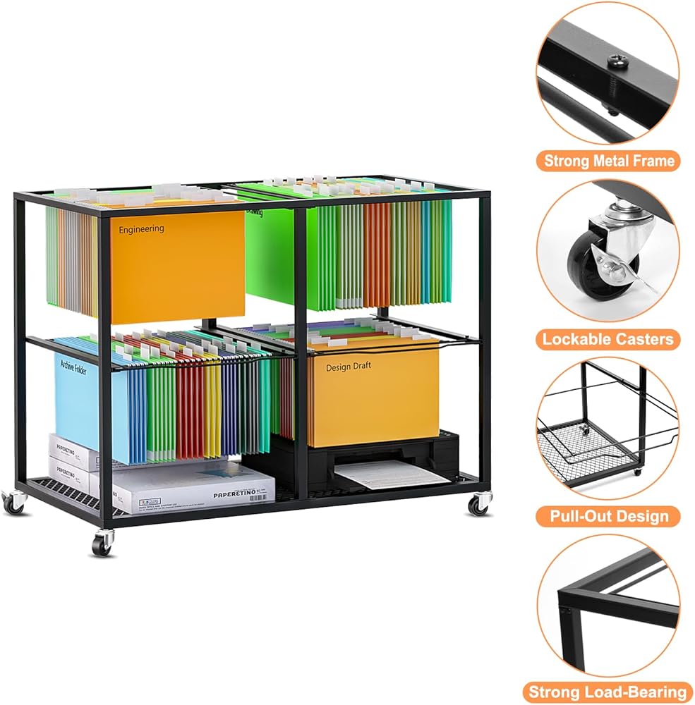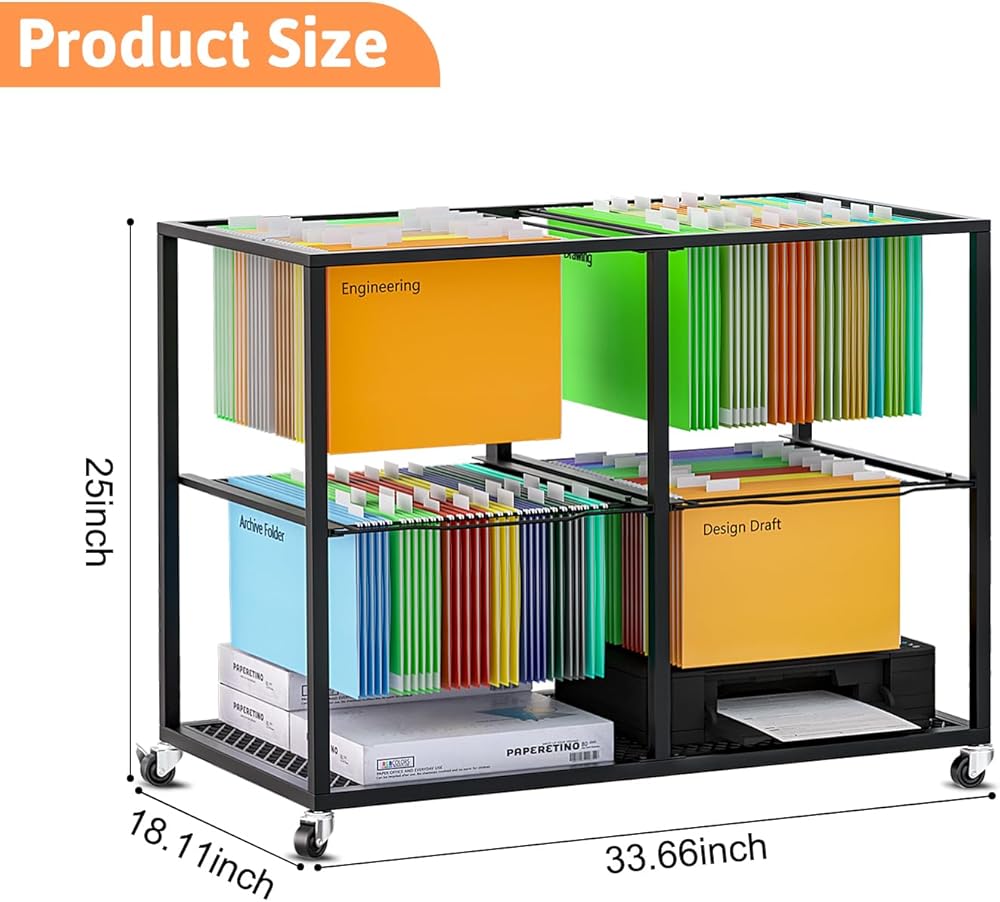 【سعة كبيرة】تحافظ عربة الملفات الدوارة هذه على تنظيم الأوراق والمستندات والطابعات واللوازم المكتبية الأخرى. يبلغ حجم عربة الملفات المتحركة القابلة للسحب 33.66 × 18.11 × 25 بوصة. أربع حجرات للتخزين مما يمنحك مساحة كبيرة لتتبع المستندات الحالية وتخزين الأعمال الورقية السابقة.