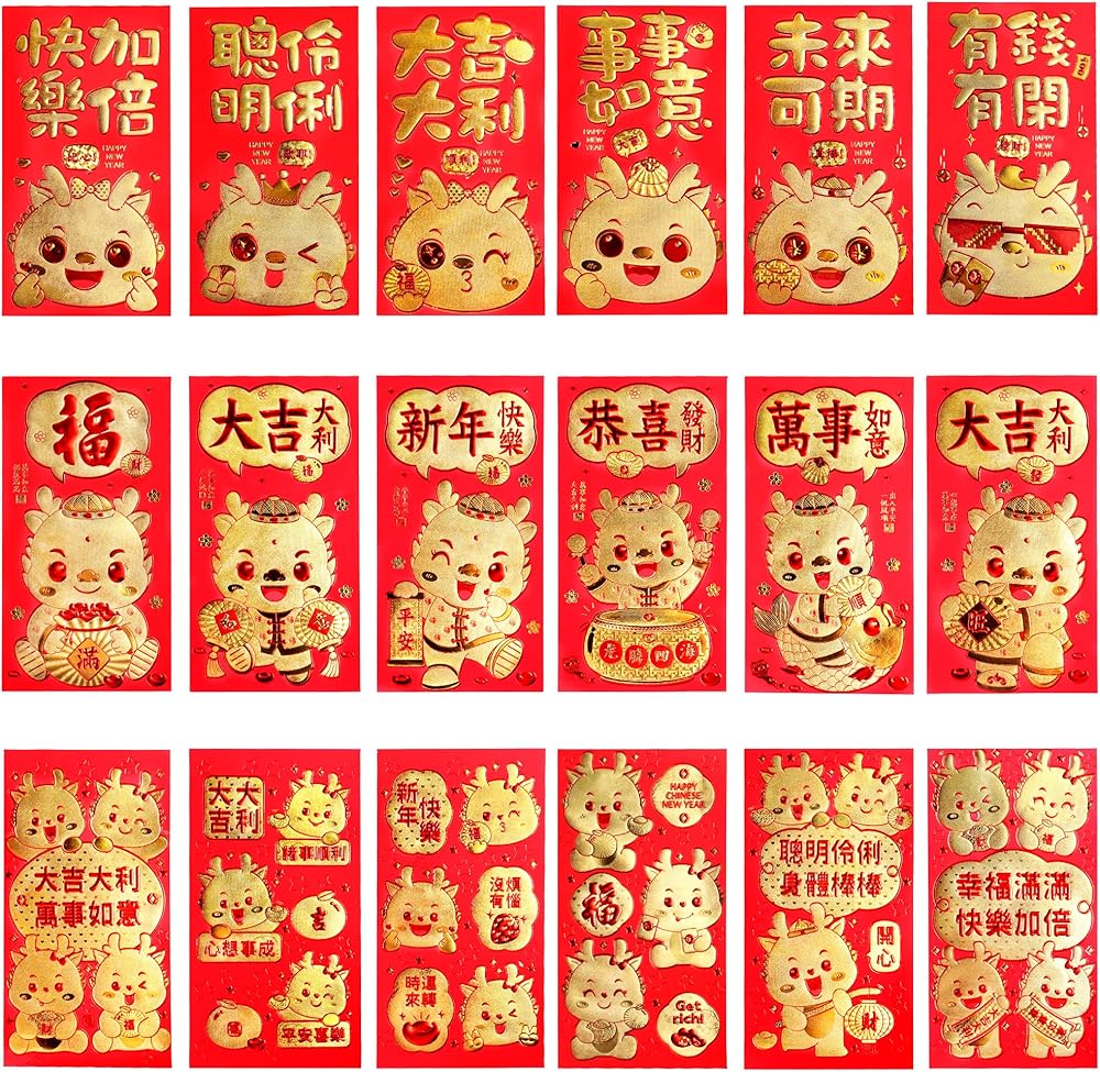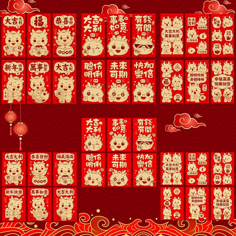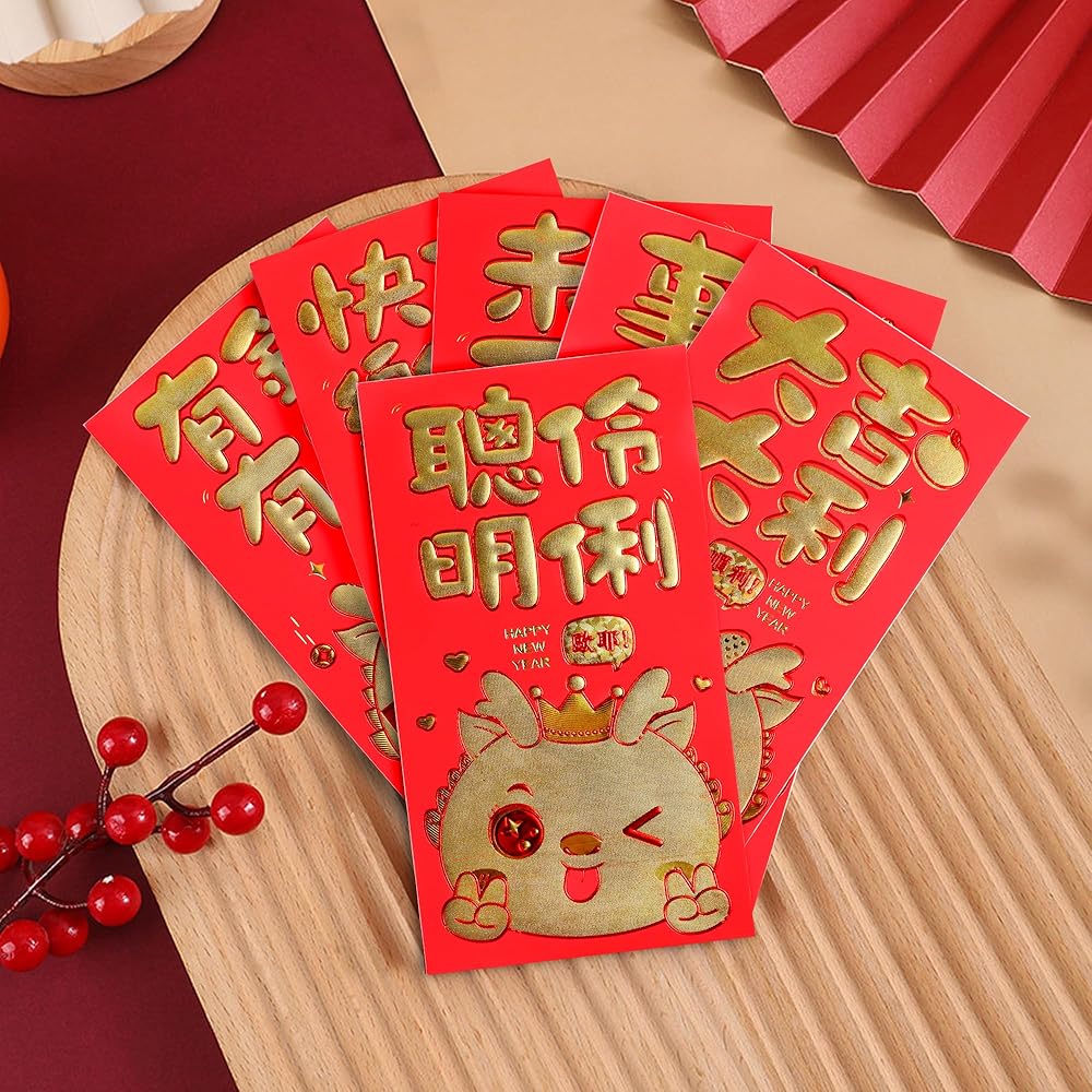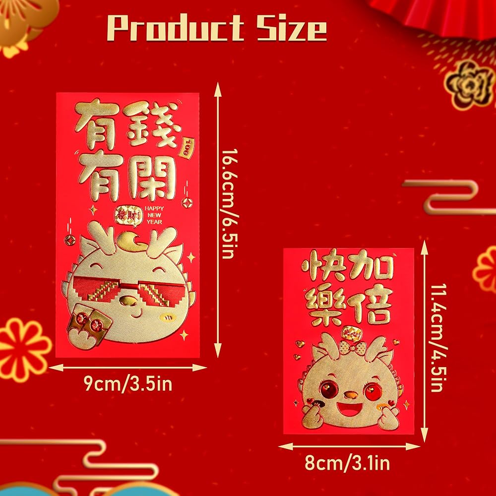 Each Chinese red envelope features lucky red and festive gold color with blessing words that will bring blessings, good luck, health, and wealth to the person who receives or gives them.